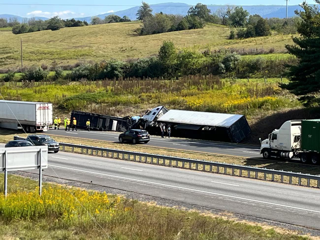 ROCKINGHAM COUNTY, Va. — A tractor-trailer crash on Interstate 81 Northbound near mile marker 248, just outside the Harrisonburg city limits, caused significant traffic backups on Wednesday, October 1st.