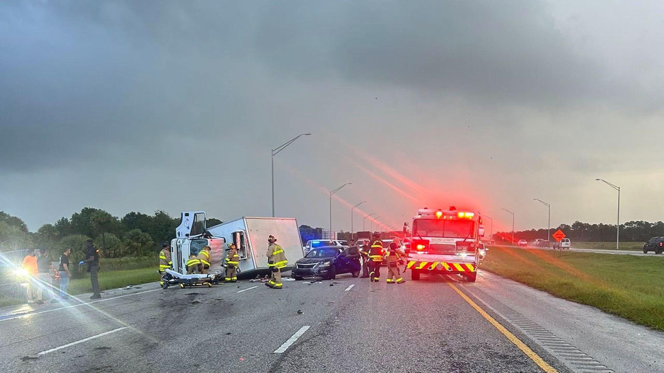 Overturned Tractor-Trailer on I-95 South Blocks Traffic in Martin County