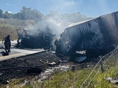 Semi Crosses Median and Crashes Into Two Tractor Trailers, Causing Fire in Phelps County, Missouri