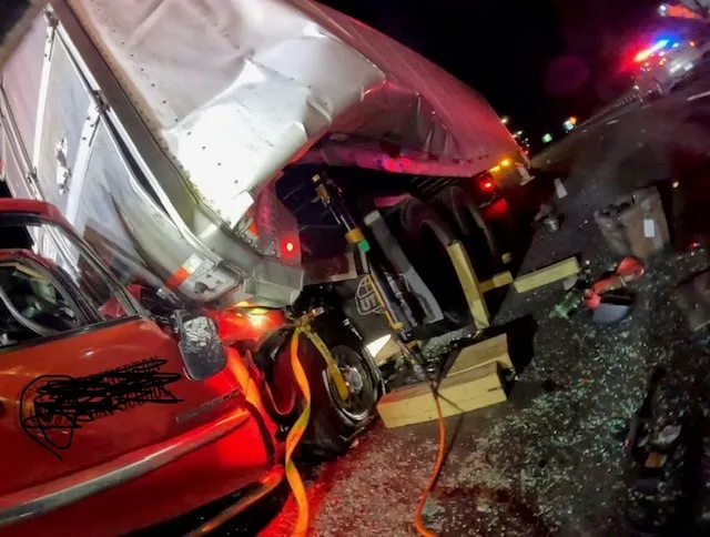 Firefighters responded to the crash on I-95 North between exits 16 and 17 around 11:12 p.m., where they found a pickup truck wedged under the rear of a tractor-trailer, according to the Norwalk Fire Department. Crews worked for about 25 minutes to remove the pickup’s door while simultaneously lifting the trailer to free the trapped driver.