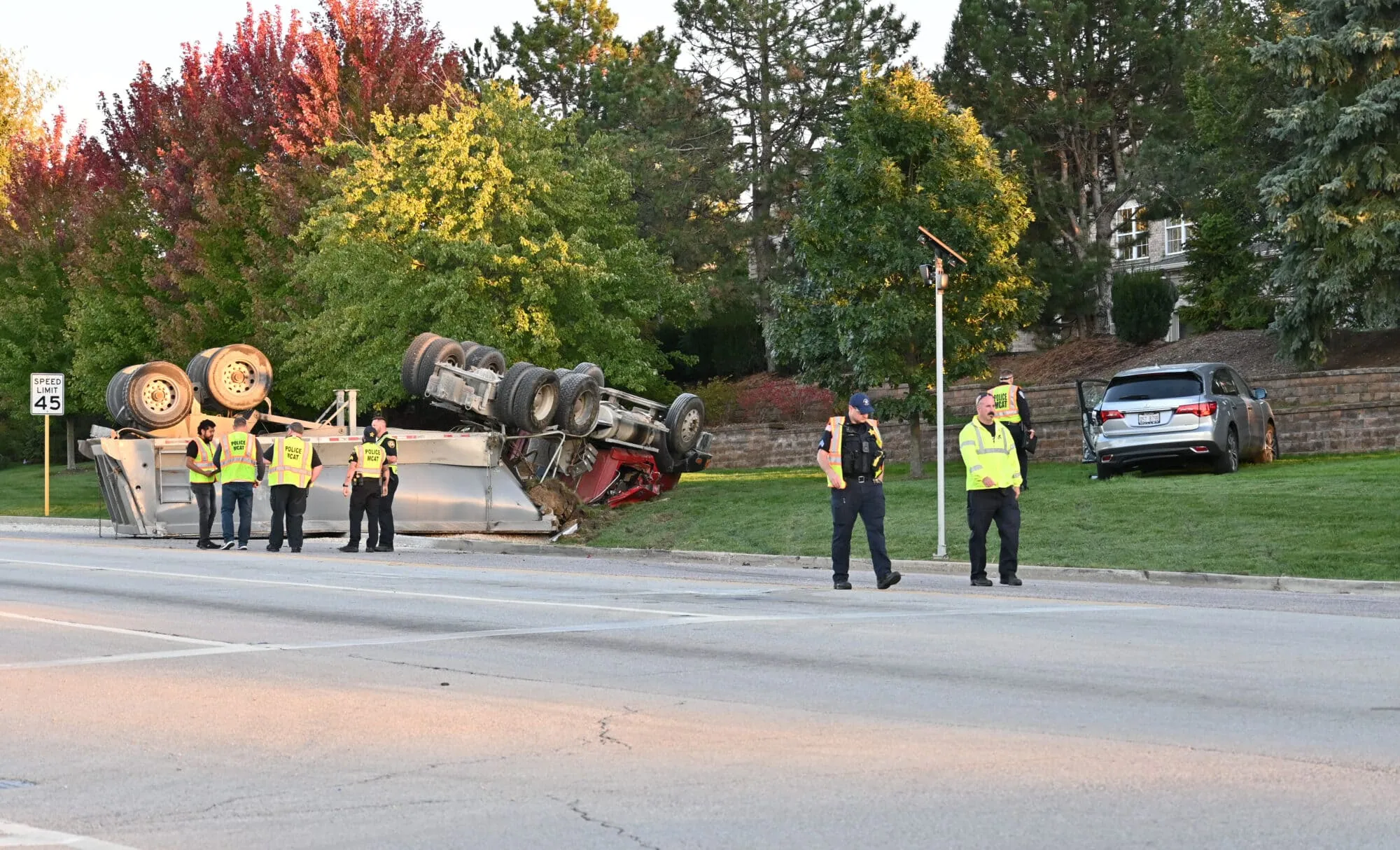 The semi-truck struck the Acura’s driver side and rolled over onto its roof, leaving the driver heavily trapped inside the cab. Firefighters worked for over an hour to free him from the wreckage. A LifeNet medical helicopter was called to Ron Beese Park, where the driver was transported by ambulance and then flown to Advocate Condell Medical Center in Libertyville. He remained alive as of Thursday morning, authorities said.