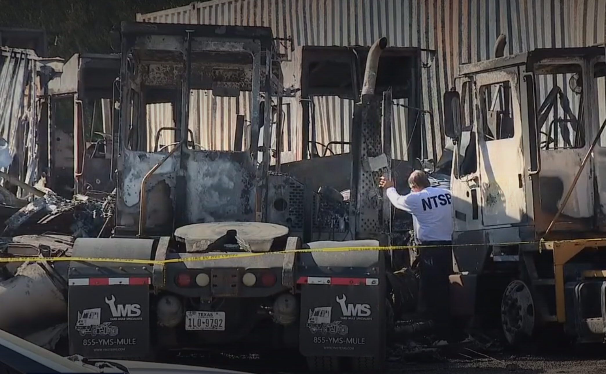 According to FOX 4 News the fire spread quickly across the lot, engulfing multiple semi-trucks and trailers before firefighters contained the blaze. Nearby business owners described hearing a loud explosion and seeing thick black smoke. “You thought for a moment your business was on fire,” said Arleth Rodriguez, co-owner of Texas Performance Exhaust Shop, located just a hundred feet from the impact site.