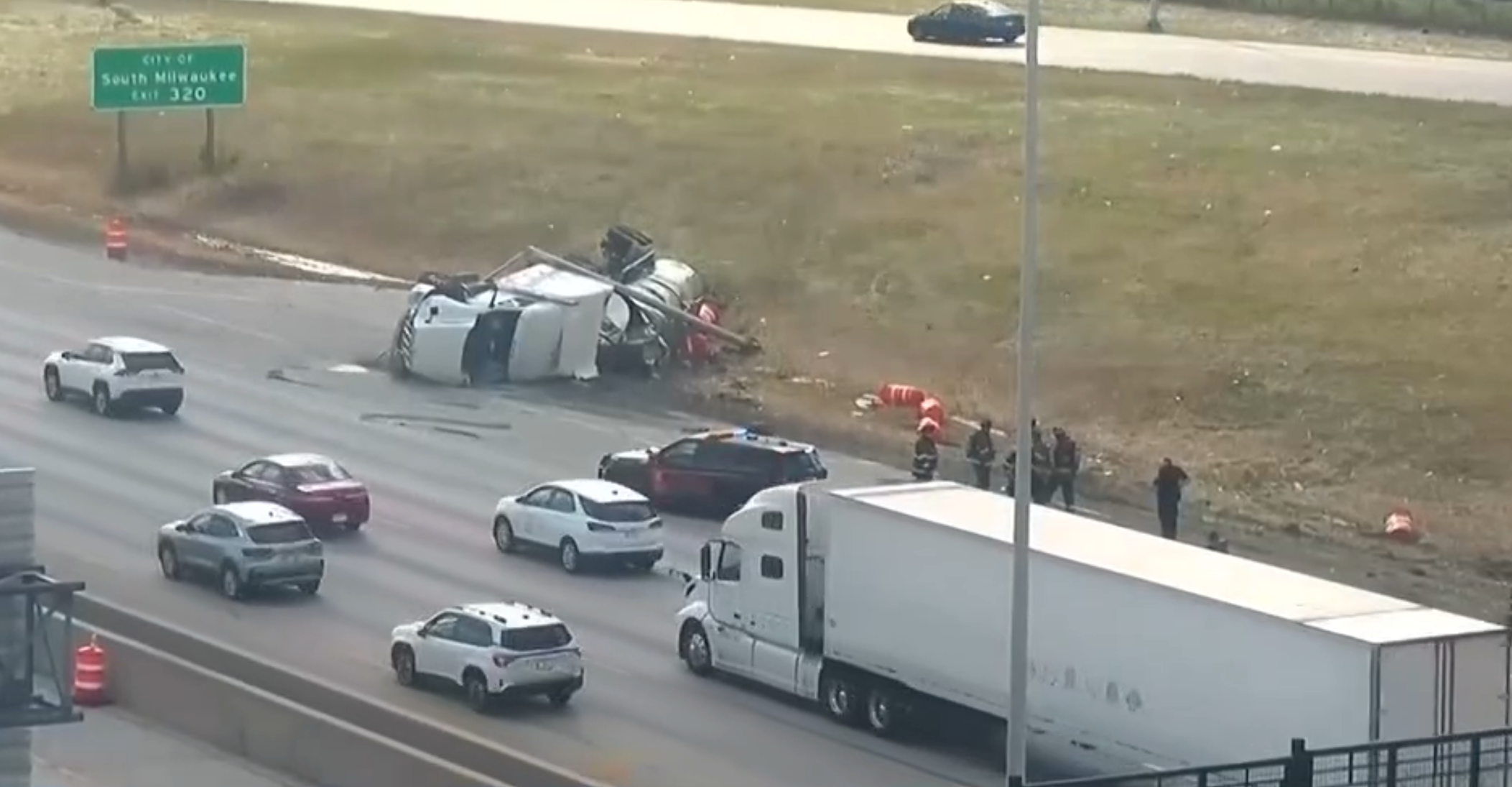 According to the Milwaukee County Sheriff’s Office, the crash happened around 1 p.m. on I-41/94 southbound near College Avenue. A 35-year-old truck driver struck a tanker truck, causing it to roll over, then fled the scene.