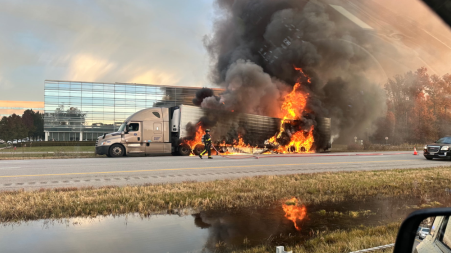 Semi Carrying Chicken Catches Fire on I-90 in Avon, Shutting Down Lanes