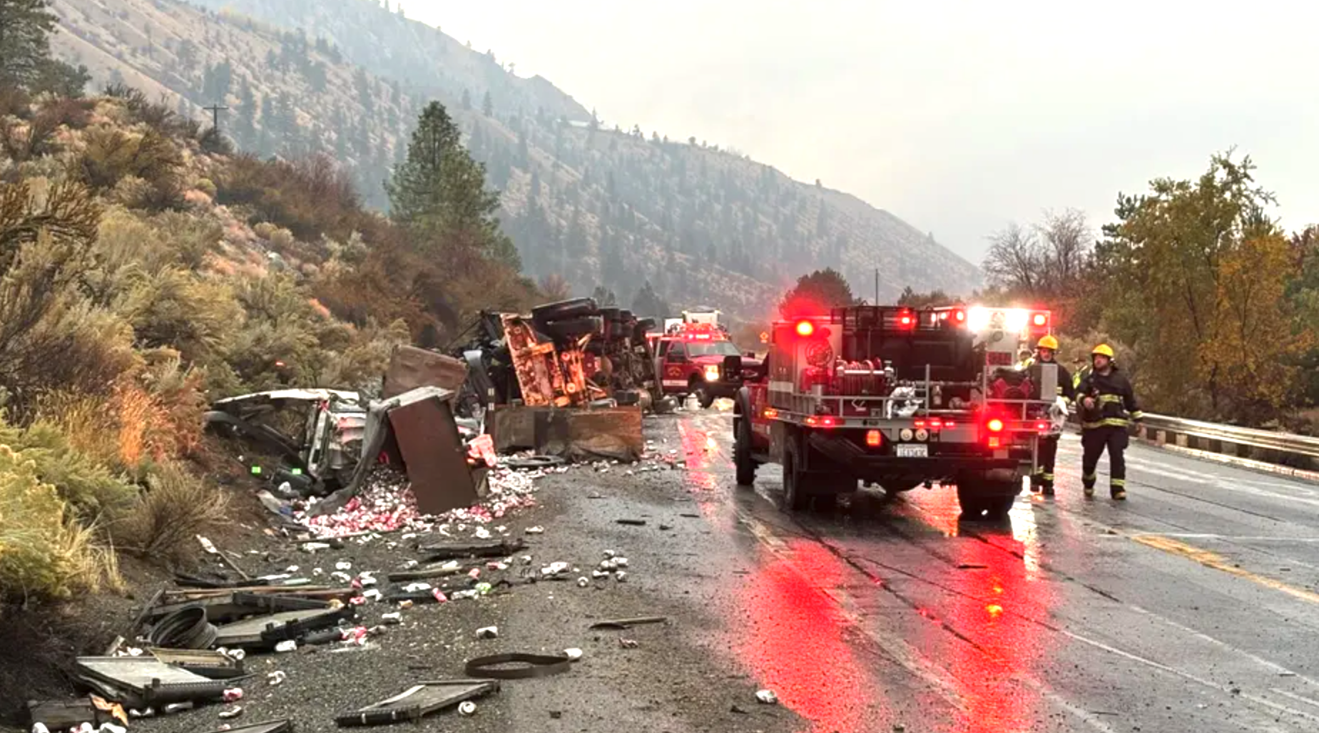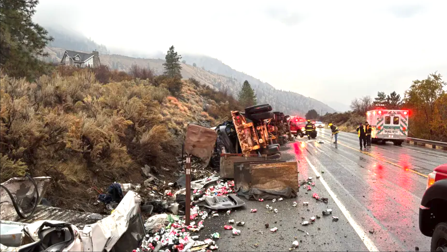 Semi-Truck Loaded With Soda Overturns on SR-97 in Chelan County