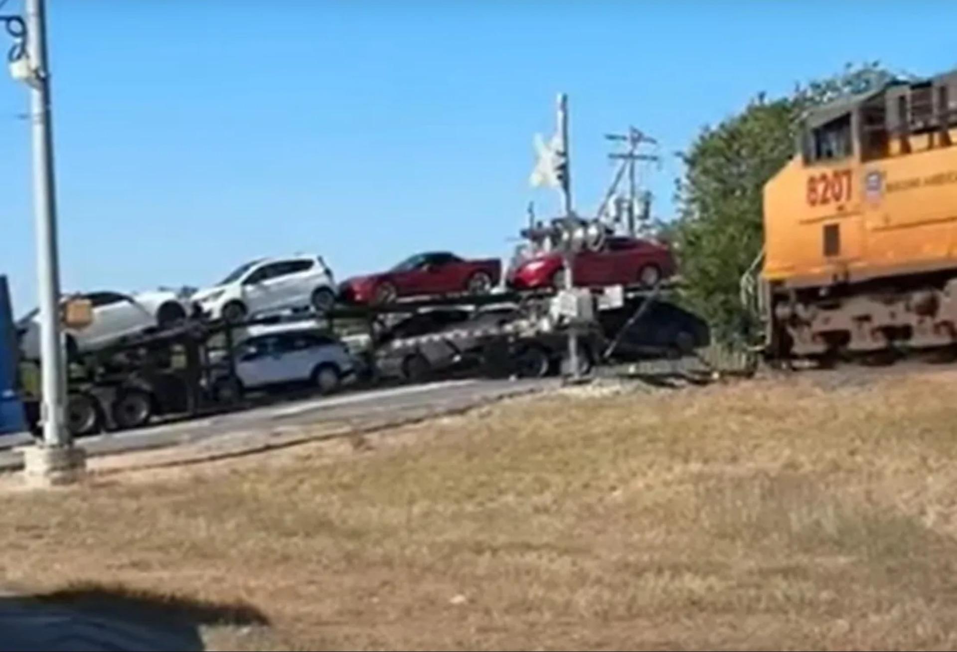 Train Crashes Into Stuck 18-Wheeler Carrying Cars in Schertz, Texas