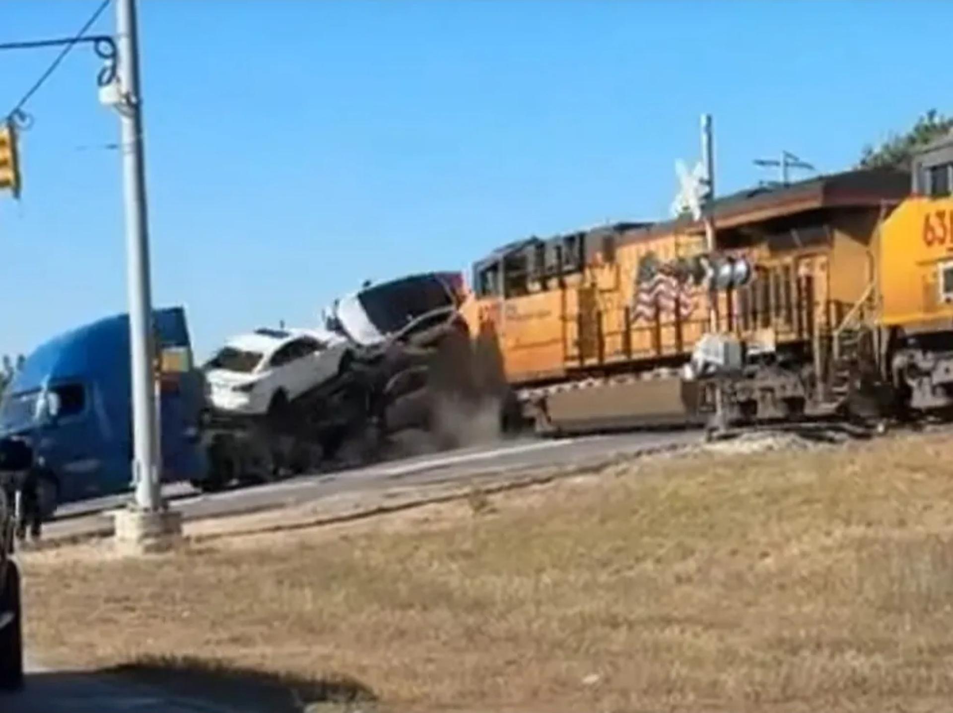 The crash occurred around 10:12 a.m. on November 2 when the car hauler stopped on the tracks and was struck moments later by an oncoming train. Video captured by a witness shows the truck driver jumping out of the cab seconds before the collision as the train’s horn blared repeatedly.