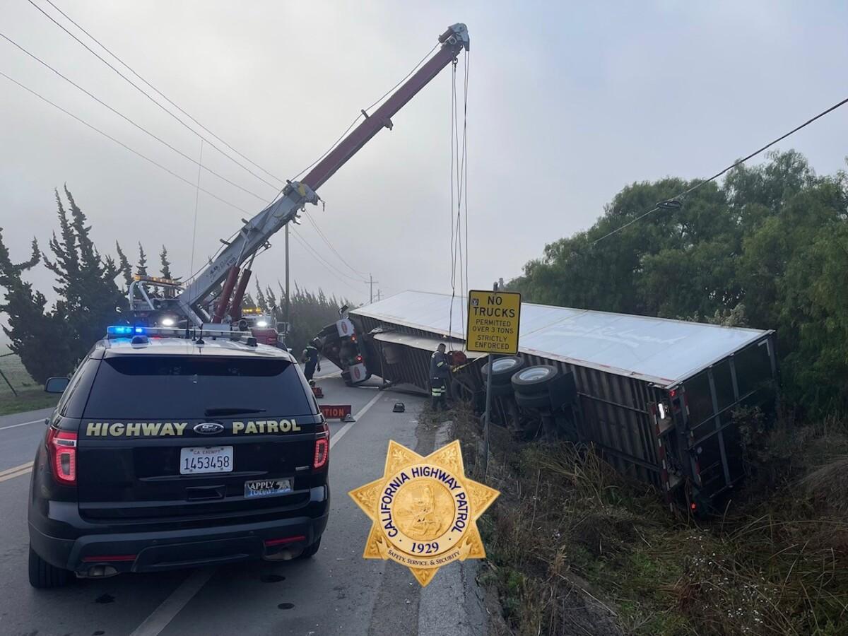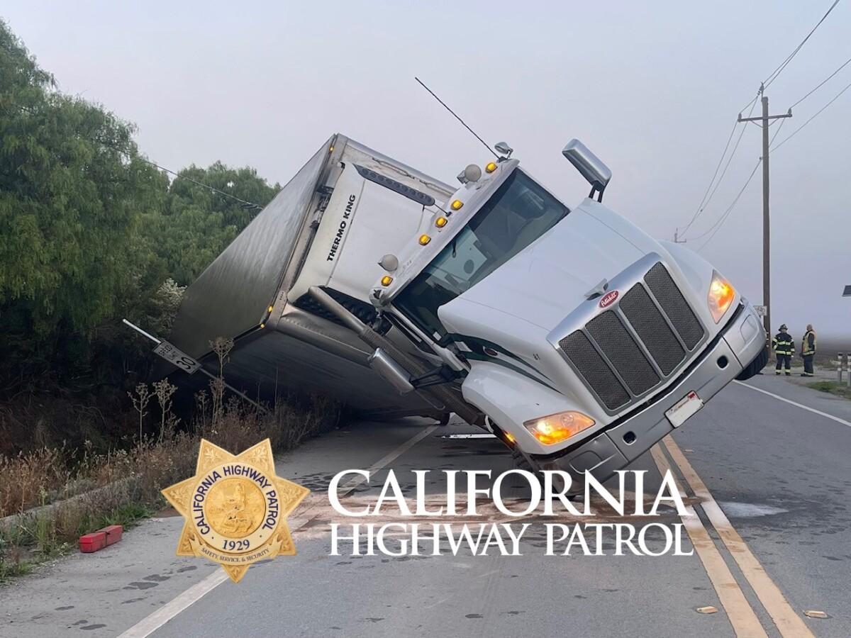 CHP’s Hollister-Gilroy Division said the incident happened along San Juan Highway toward San Juan Bautista. Despite three regulatory signs advising against taking the road, the truck driver continued on and discovered too late that the vehicle couldn’t make a tight roundabout ahead.