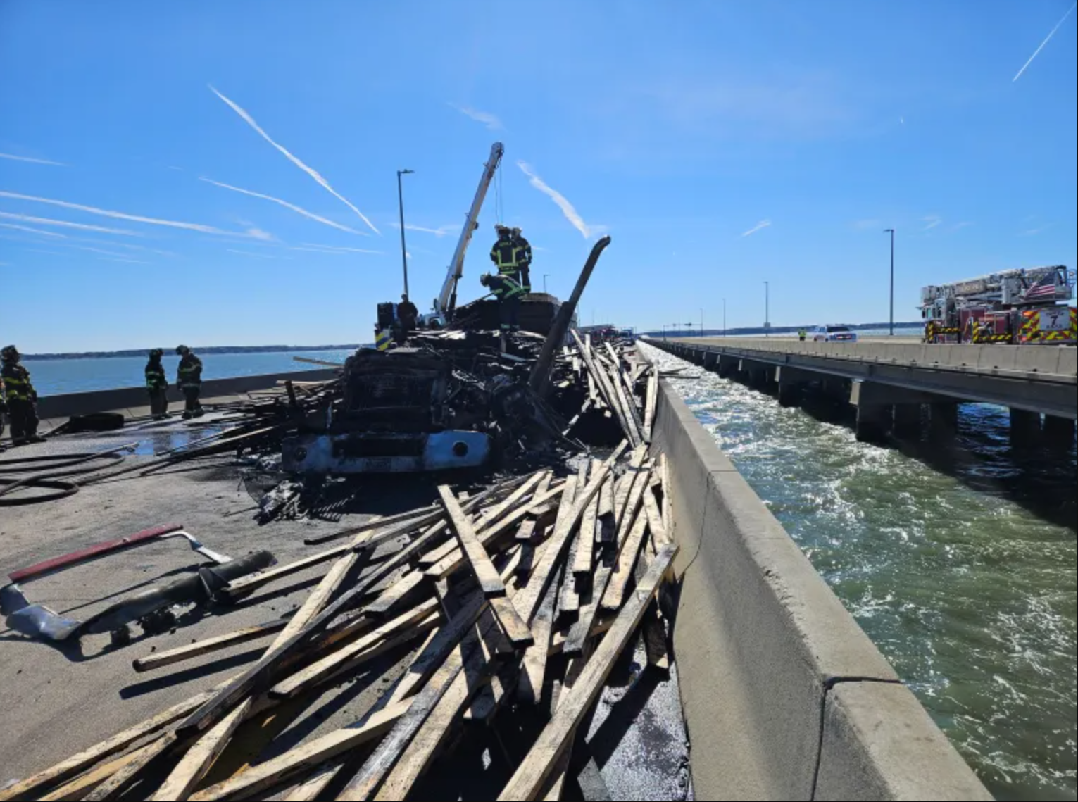 Truck driver charged with following too closely after fiery crash between two Freightliners on Monitor-Merrimac Bridge-Tunnel