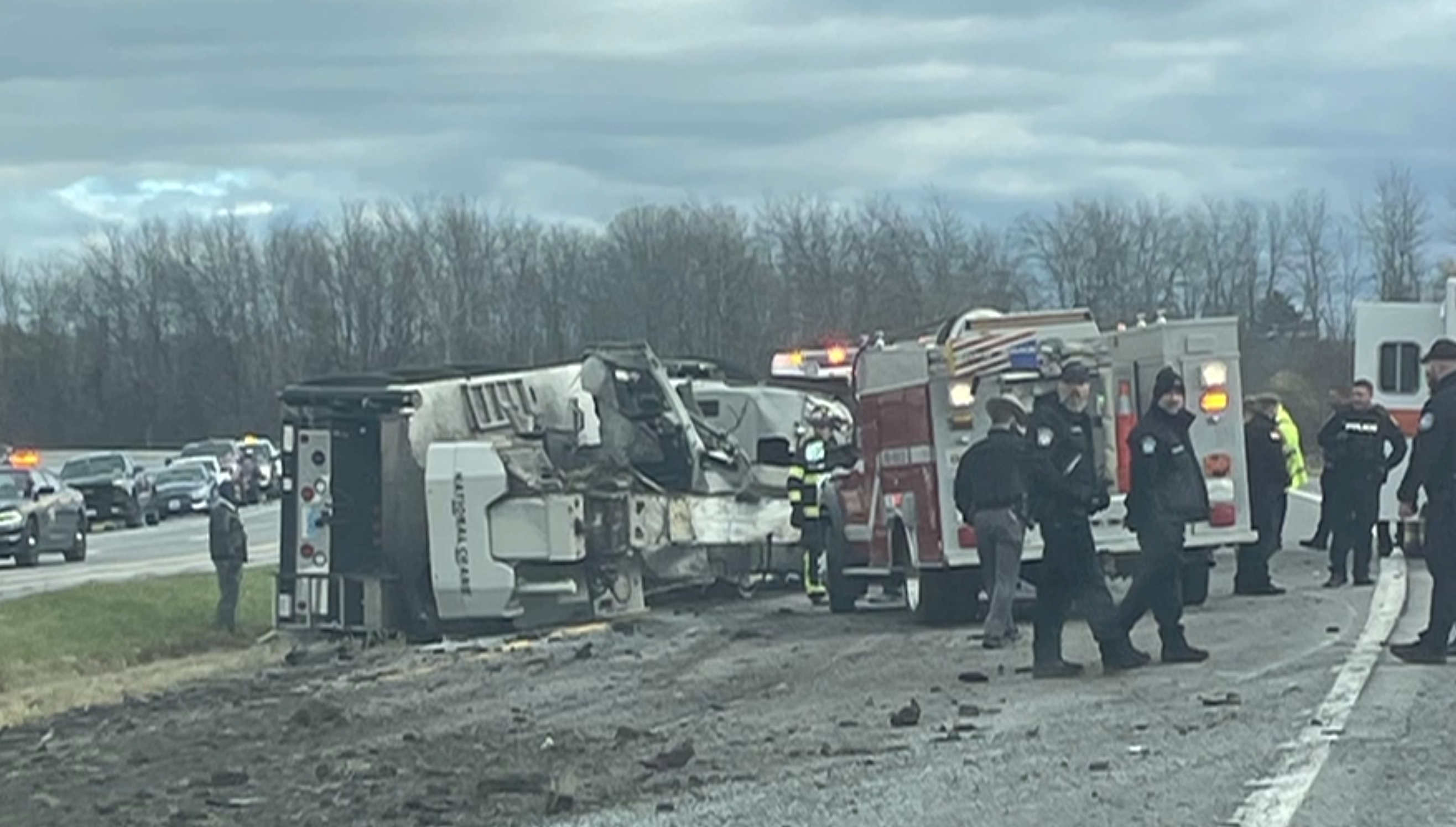 According to New York State Police, the crash happened shortly after noon when 58-year-old Frank Ledeay of Bloomington, Texas, veered off the road for an unknown reason. The truck entered the median, overturned, and came to rest in the roadway.