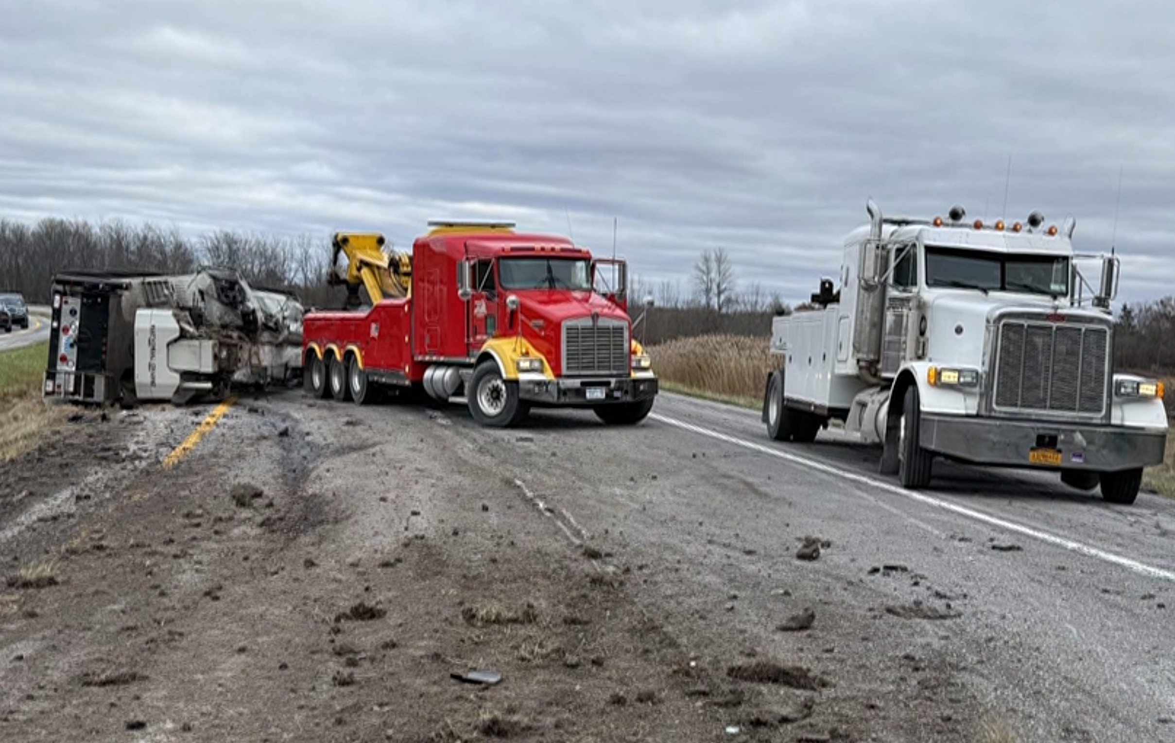 Peterbilt crane truck overturns near Massena, driver airlifted to Syracuse