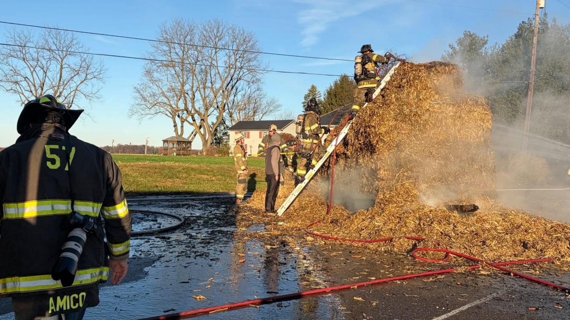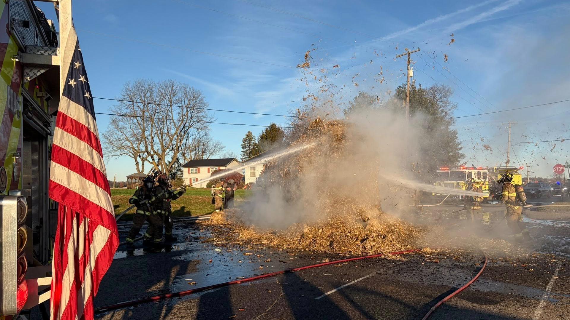 DRUMORE TOWNSHIP, Pa. — Firefighters responded early Friday morning after a tractor-trailer loaded with hay caught fire along Lancaster Pike in Lancaster County, officials said.