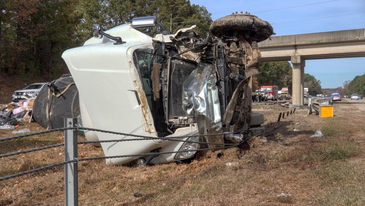 According to JoCo Report and WRAL, the crash occurred shortly after 1 p.m. near mile marker 316 at the Sanders Road bridge in Johnston County. Troopers with the North Carolina State Highway Patrol said the semi was traveling east when its front tire blew out, causing the driver to lose control of the rig.
