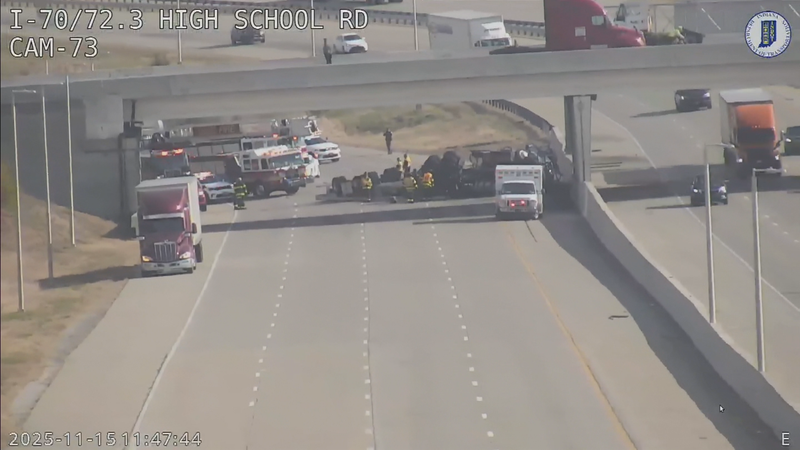 The Indiana Department of Transportation (INDOT) said both the northbound and southbound ramps from I-465 to I-70 westbound were closed and are expected to remain shut down for an extended period while crews work to remove the cargo and upright the semi.