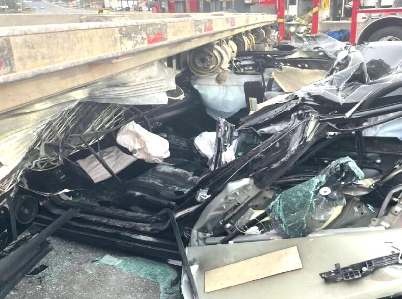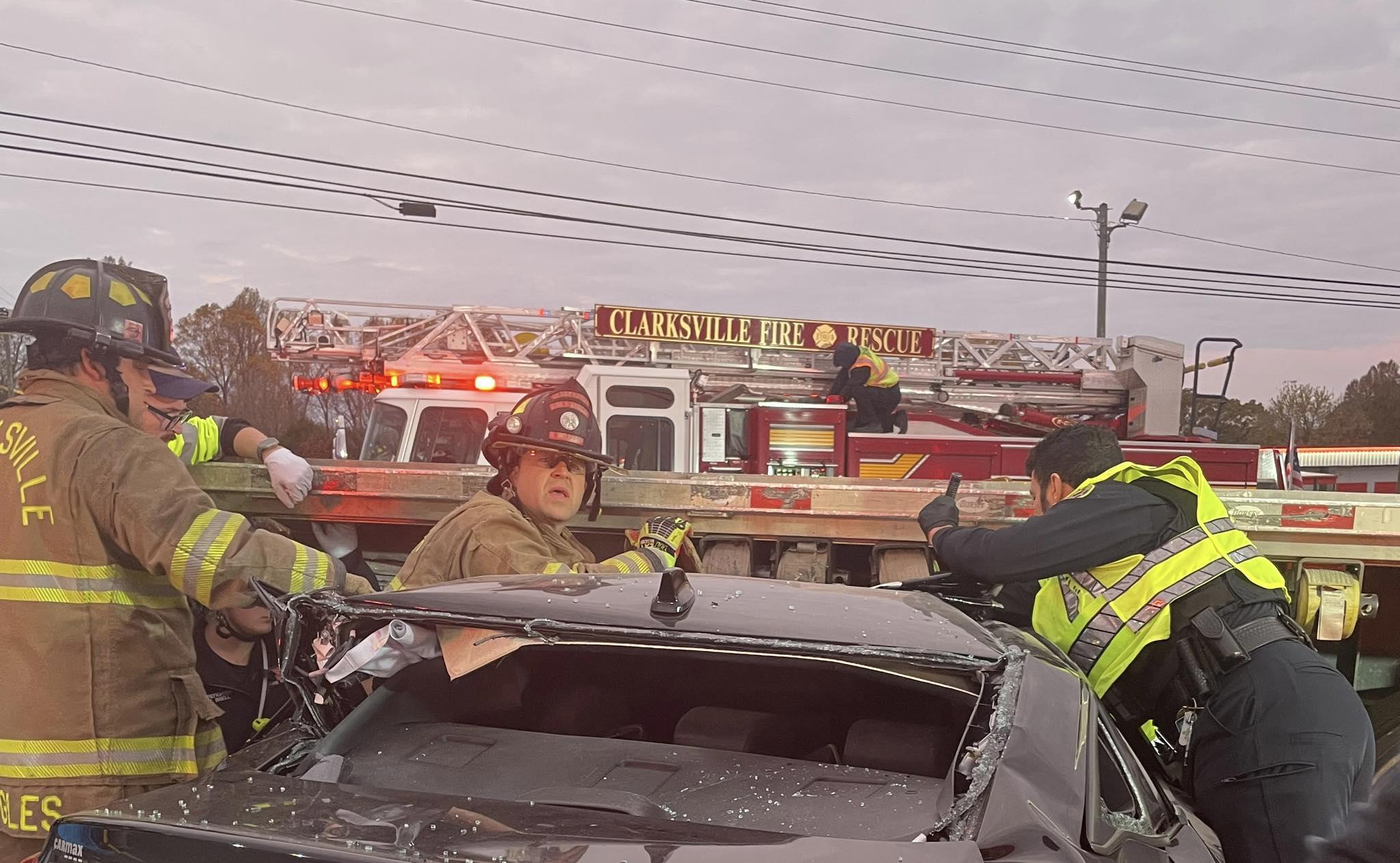 The crash happened around 6:05 a.m. at Ft. Campbell Boulevard and Millswood Drive, where Clarksville Fire & Rescue units responded to reports of a vehicle trapped under the rear section of a flatbed trailer, according to Clarksville Fire & Rescue.