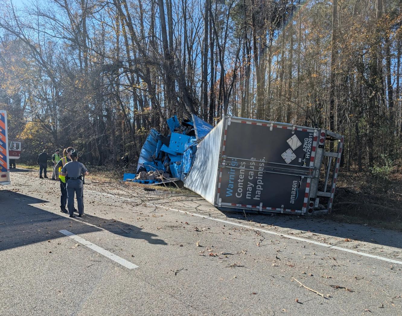 Troopers said the crash occurred around 2 p.m. on November 19 along I-95 South near the Route 301 exit at the 12-mile marker, according to WRIC. An initial investigation found that the tractor-trailer ran off the right side of the roadway, struck multiple trees, and overturned.