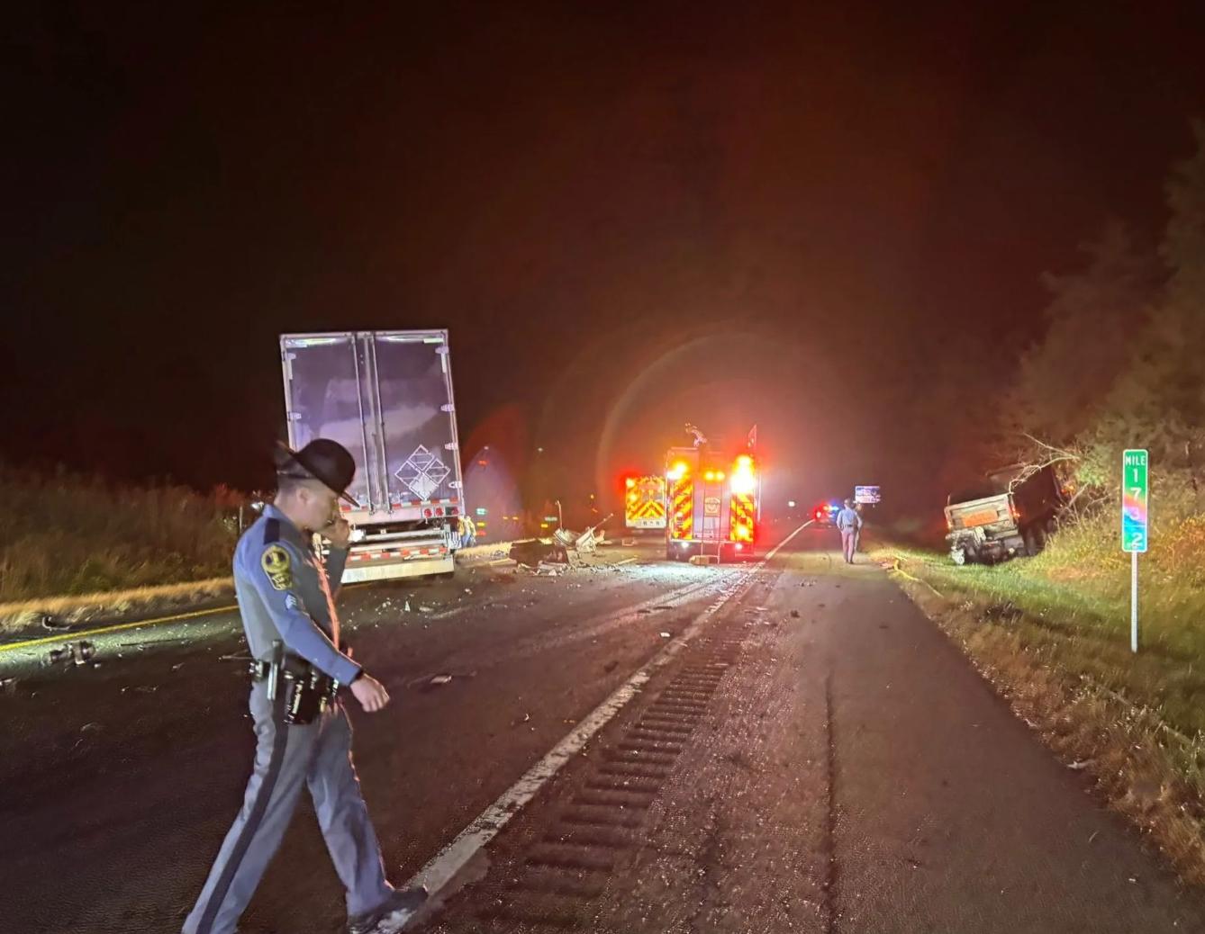 State Police reported a significant diesel fuel spill from the tractor-trailer, prompting a response from VDOT’s Traffic Incident Management (TRIP) team. The crash caused extensive lane closures as crews worked to contain the spill and clear the scene.