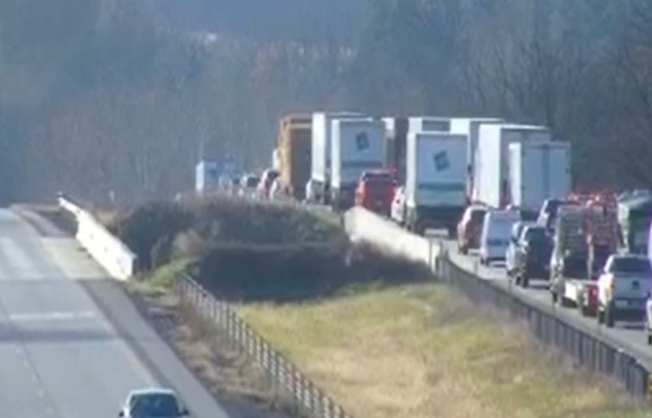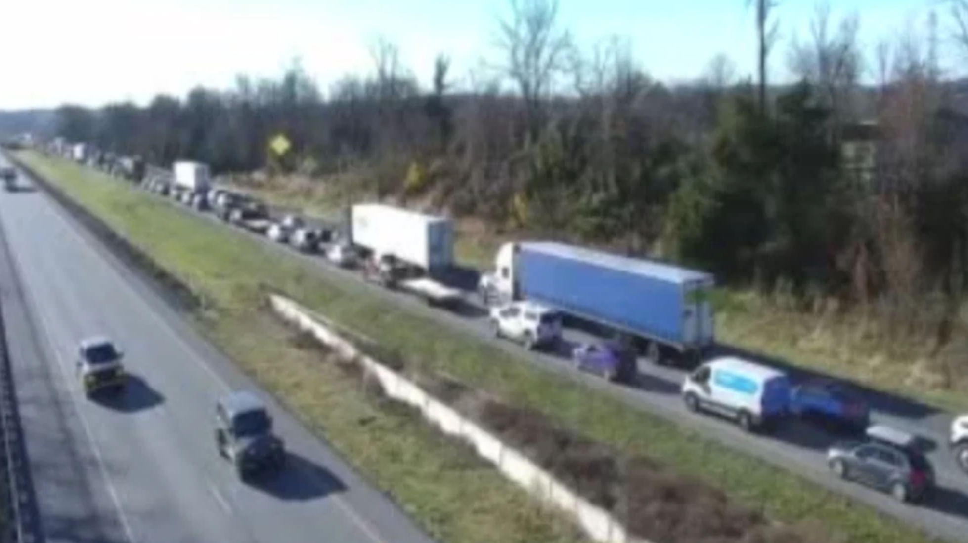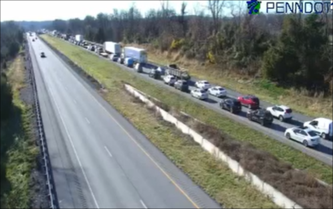 Traffic is heavily backed up, and PennDOT warns drivers to expect major delays and use caution near the scene as crews work to clear the wreckage and remove the tractor-trailer.