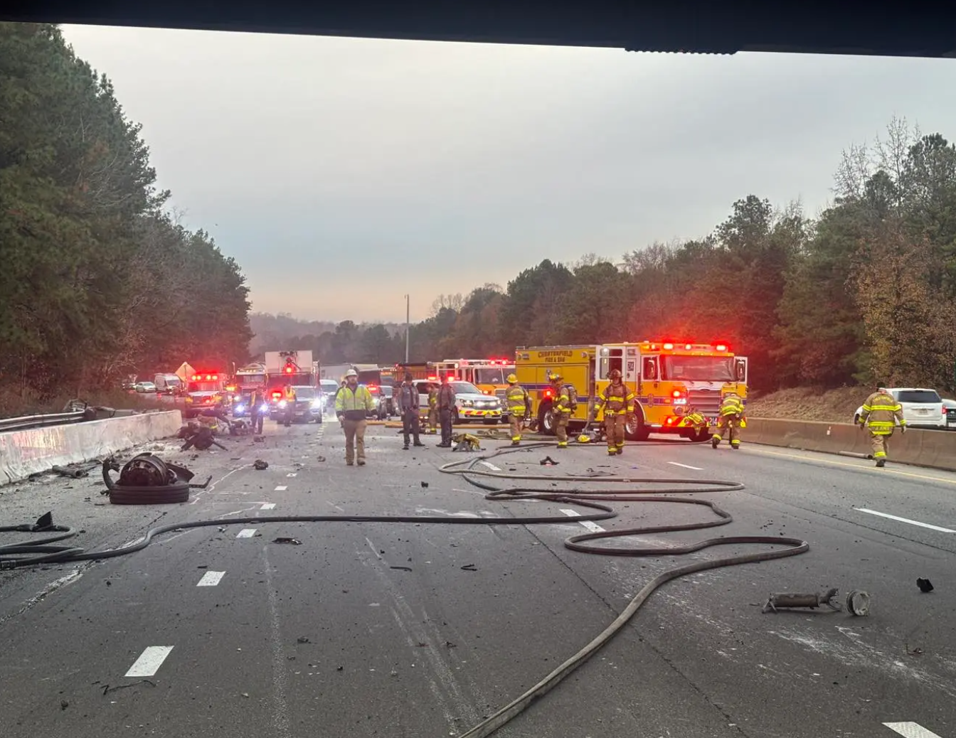 Chesterfield County Fire and EMS said the flames have been extinguished, but the highway will stay closed for an extended period due to cleanup and recovery operations.