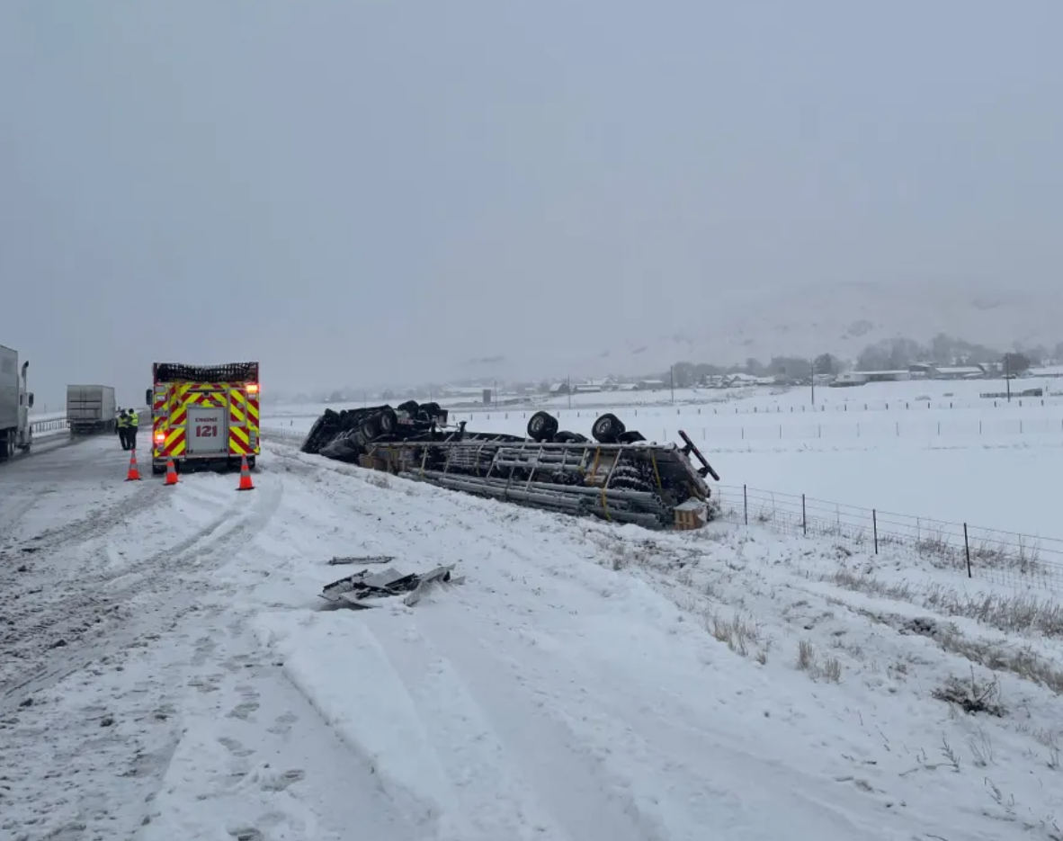 Three Semi-Trucks Crash on I-84 in Weber Canyon as Heavy Snow Creates Hazardous Road Conditions