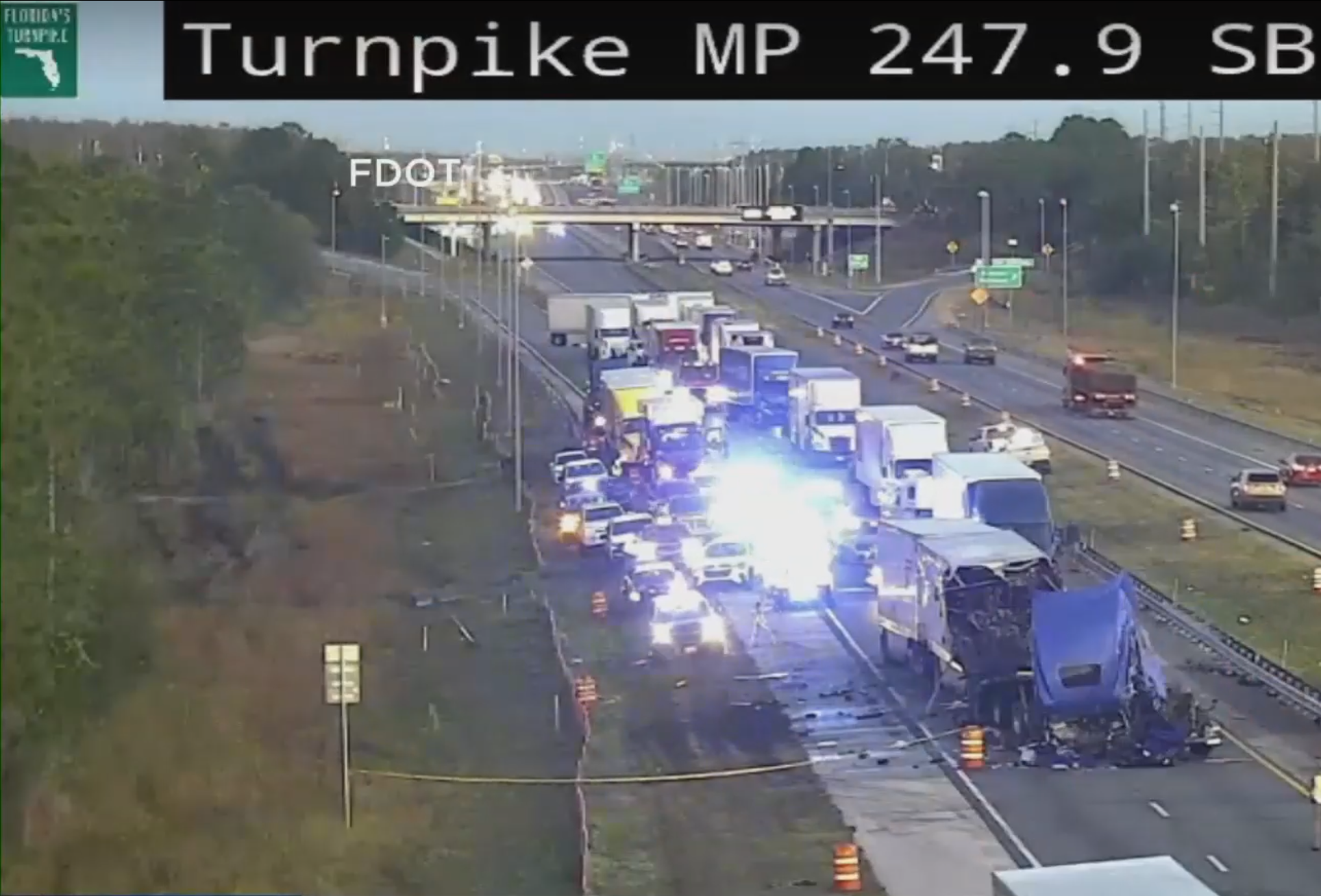1 Dead, 1 Seriously Injured After 3 Semi-Trucks Collide on Florida Turnpike Near Kissimmee