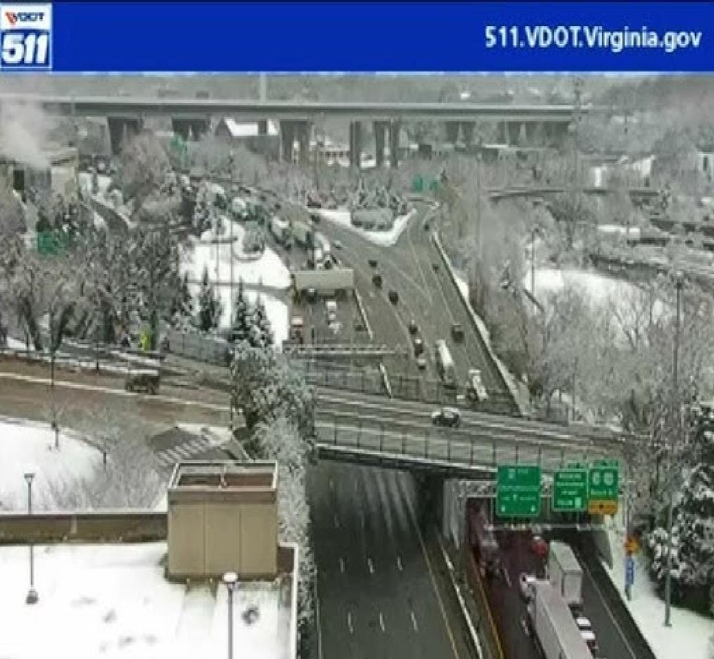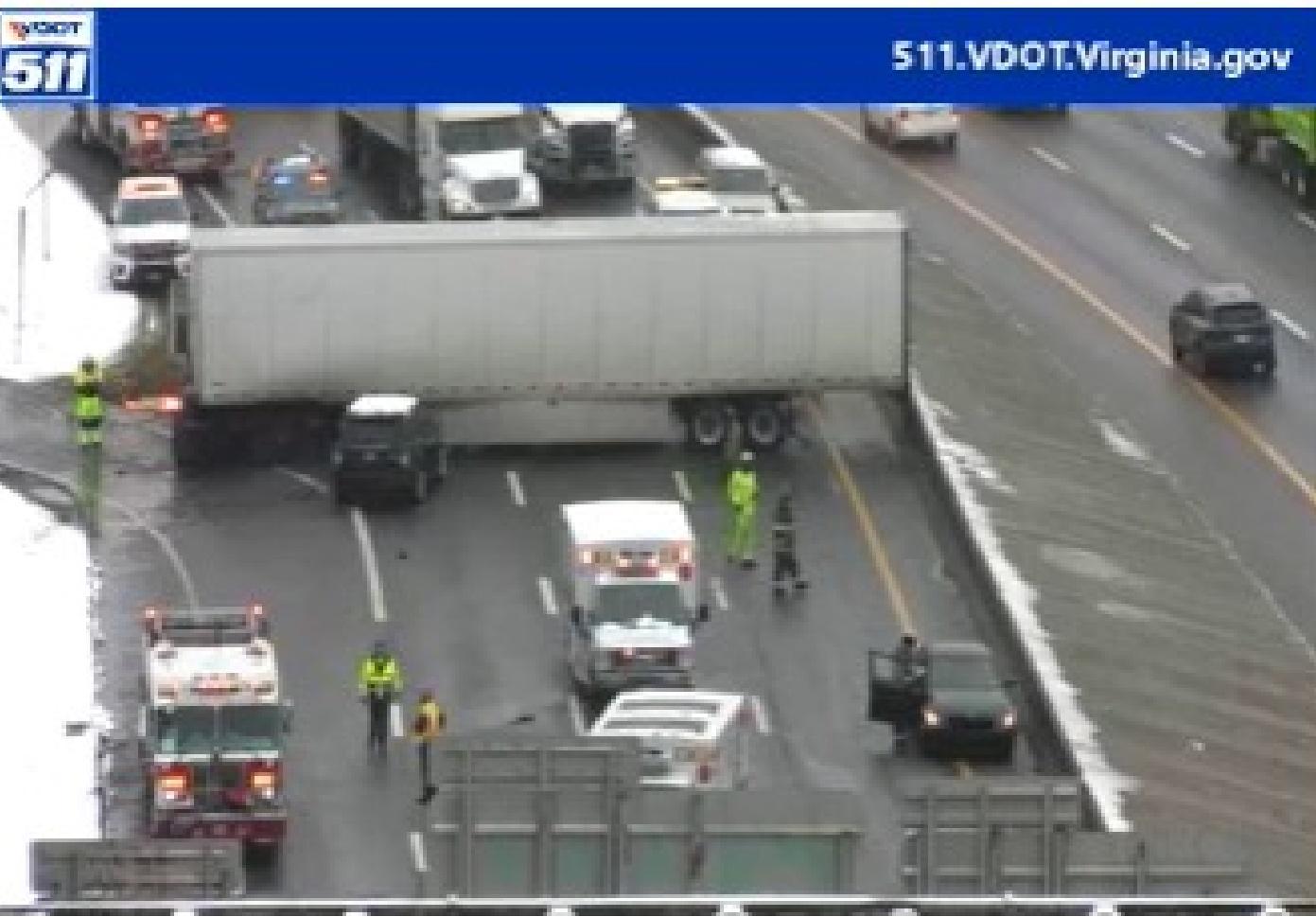 Jackknifed Tractor-Trailer Among 10 Vehicles Involved in I-95 South Crash During Richmond Snowfall