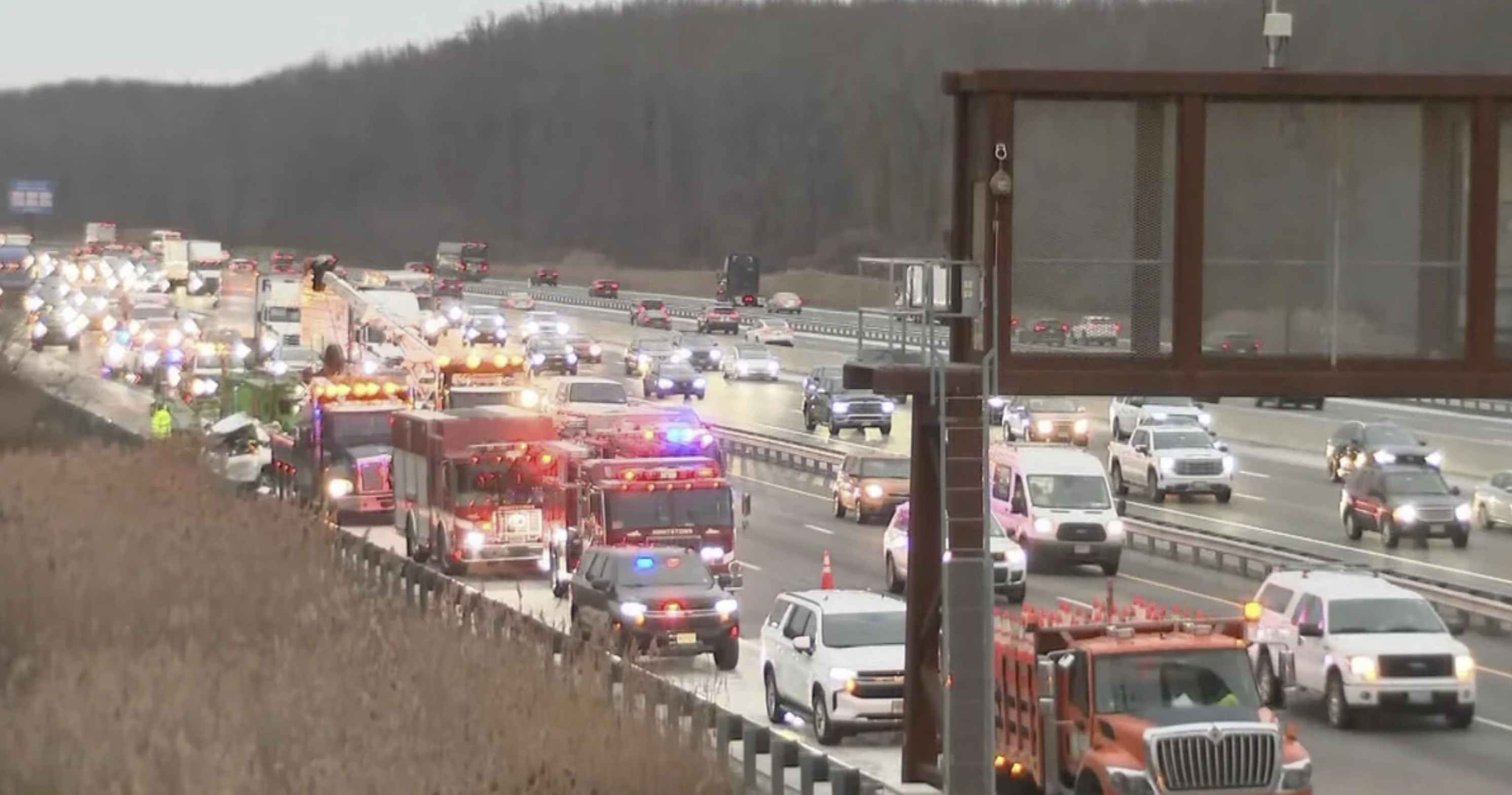 According to CBS News Philadelphia, the SUV had pulled over before being struck by the semi. The roadway was shut down for an extended investigation and cleanup.