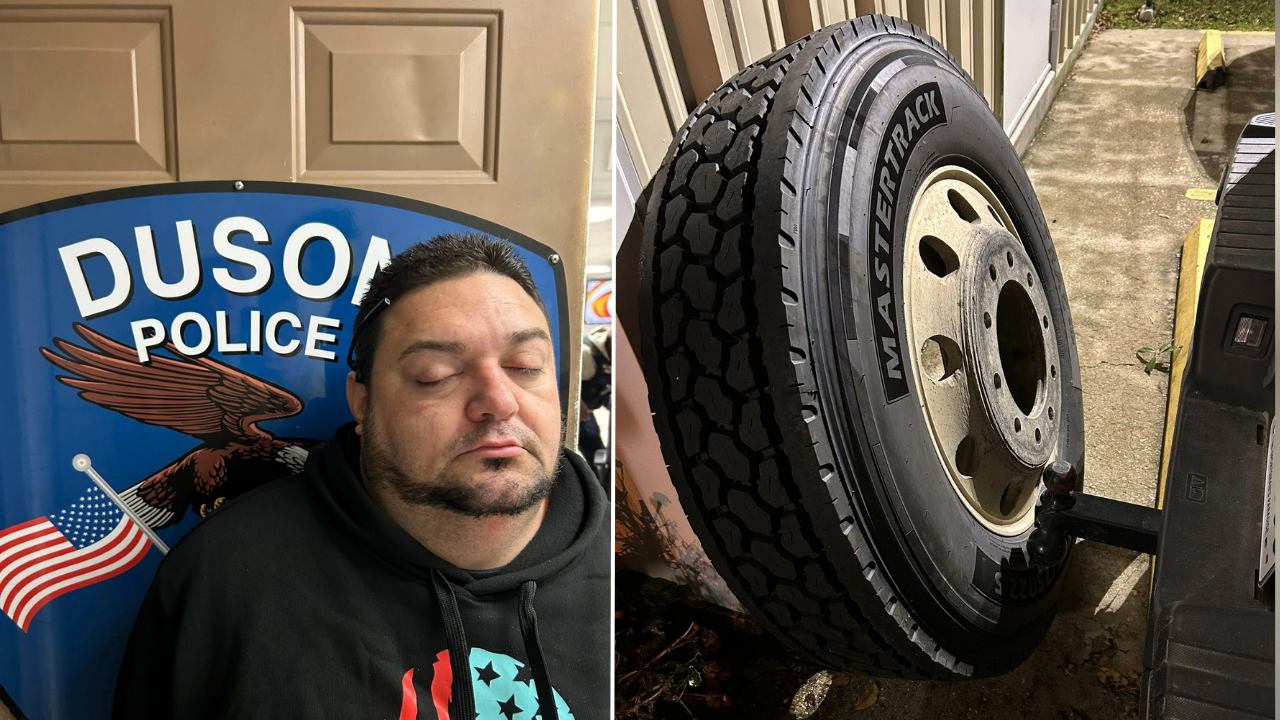 DUSON, Louisiana — A Florida truck driver is behind bars after police say he stole multiple items — including two brand-new semi-truck tires — from a fellow trucker’s parked big rig at a Duson truck stop.