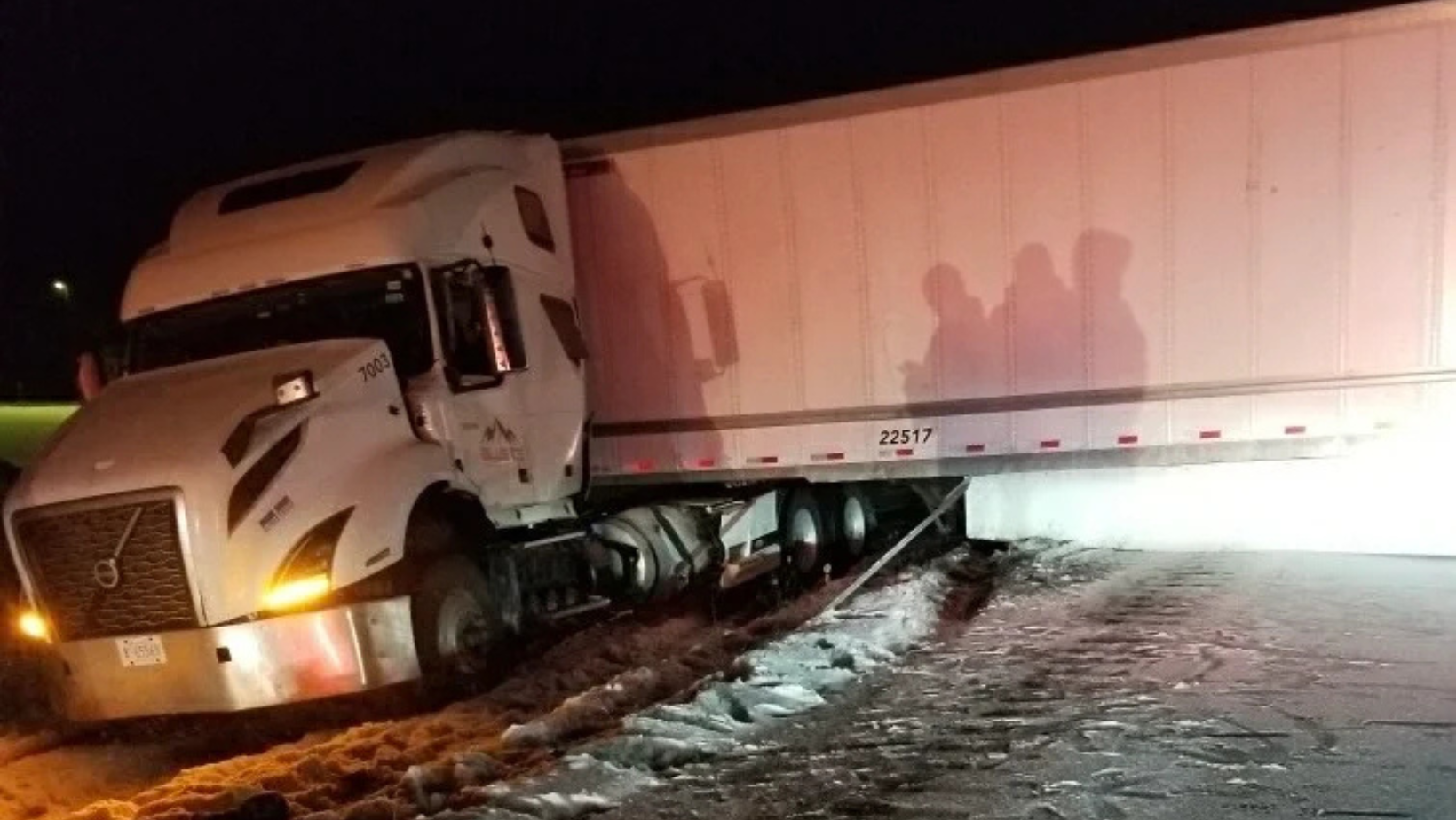 State Police said roadway conditions were lightly wet and covered with snow at the time. Their investigation determined that Sran attempted to pass another vehicle “at an unreasonable speed”, resulting in a complete loss of control and the truck folding across the interstate.