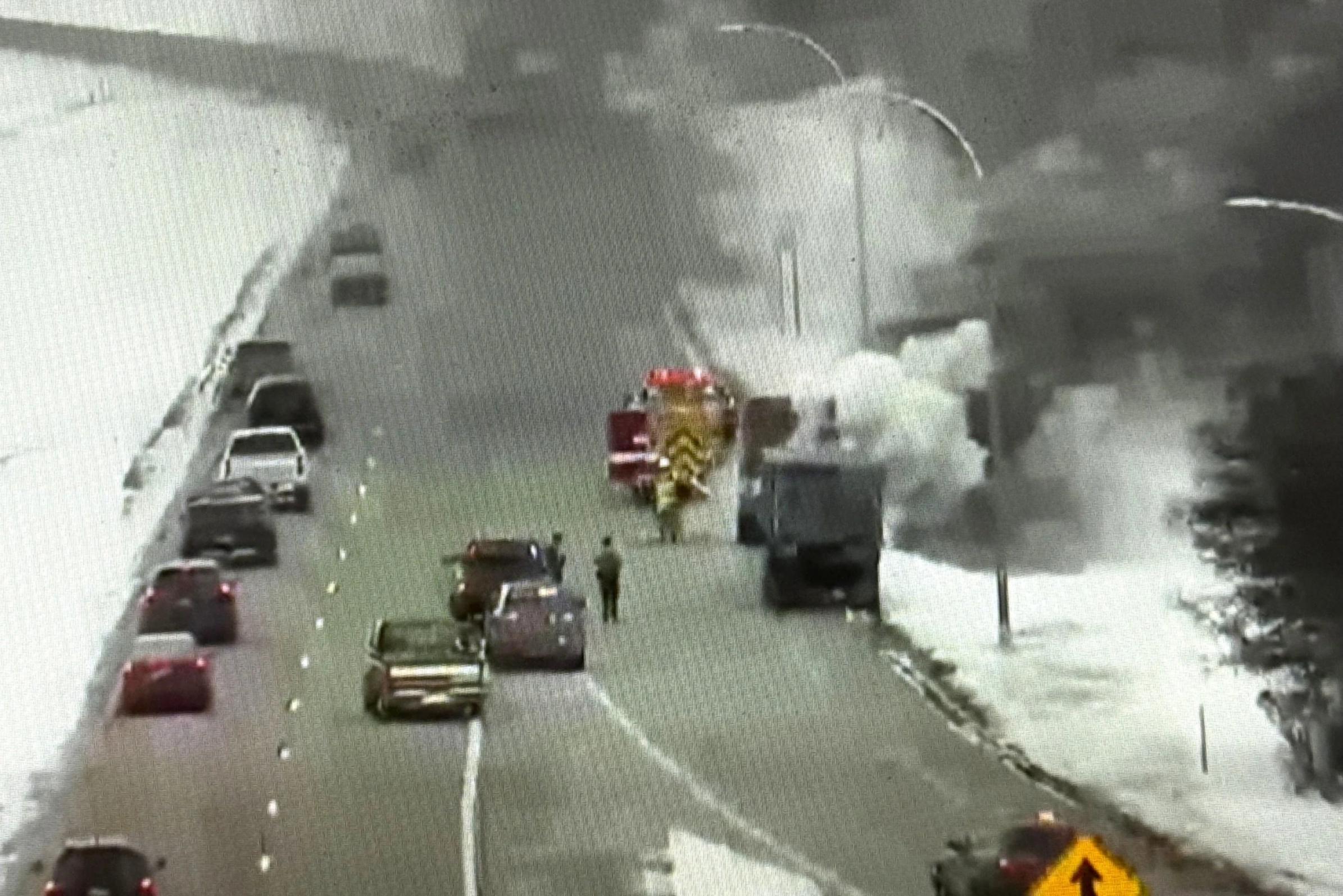 Tire Blowout Sparks Semi-Truck Fire Between Cab and Trailer on Highway 52 in Pine Island