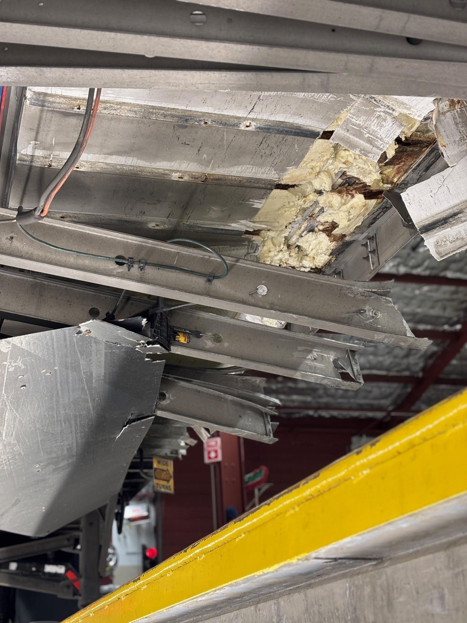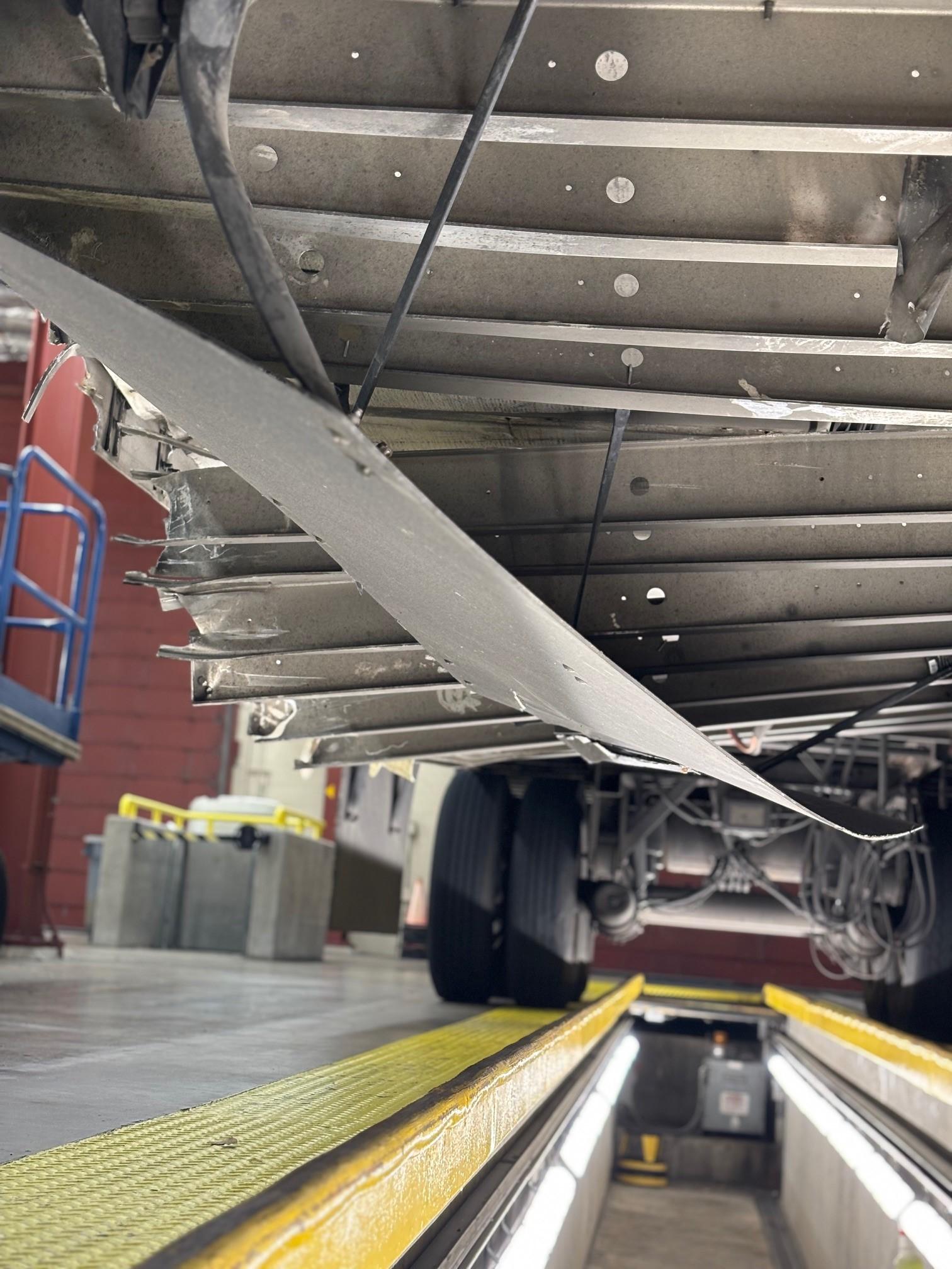 The trailer had severe structural damage, prompting officers to escort the truck back to the enforcement facility for a full inspection. CHP later released photos showing the extent of the destruction, which included significant tearing and deformation along the trailer’s side.