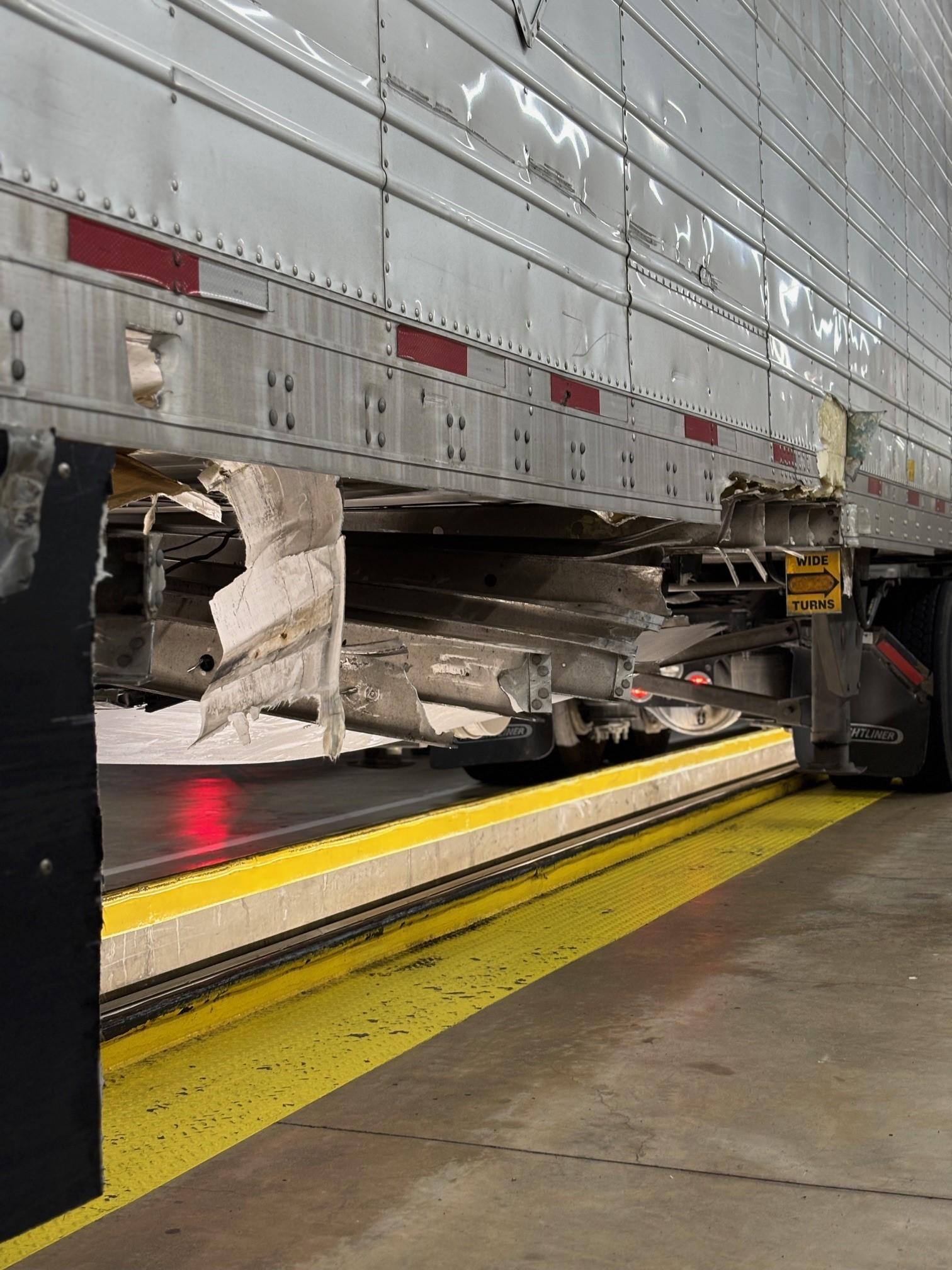 COTTONWOOD, Calif. — A semi-truck driver who attempted to bypass the Cottonwood Commercial Vehicle Enforcement Facility on Wednesday was discovered to be hiding major trailer damage, according to the California Highway Patrol (CHP).
