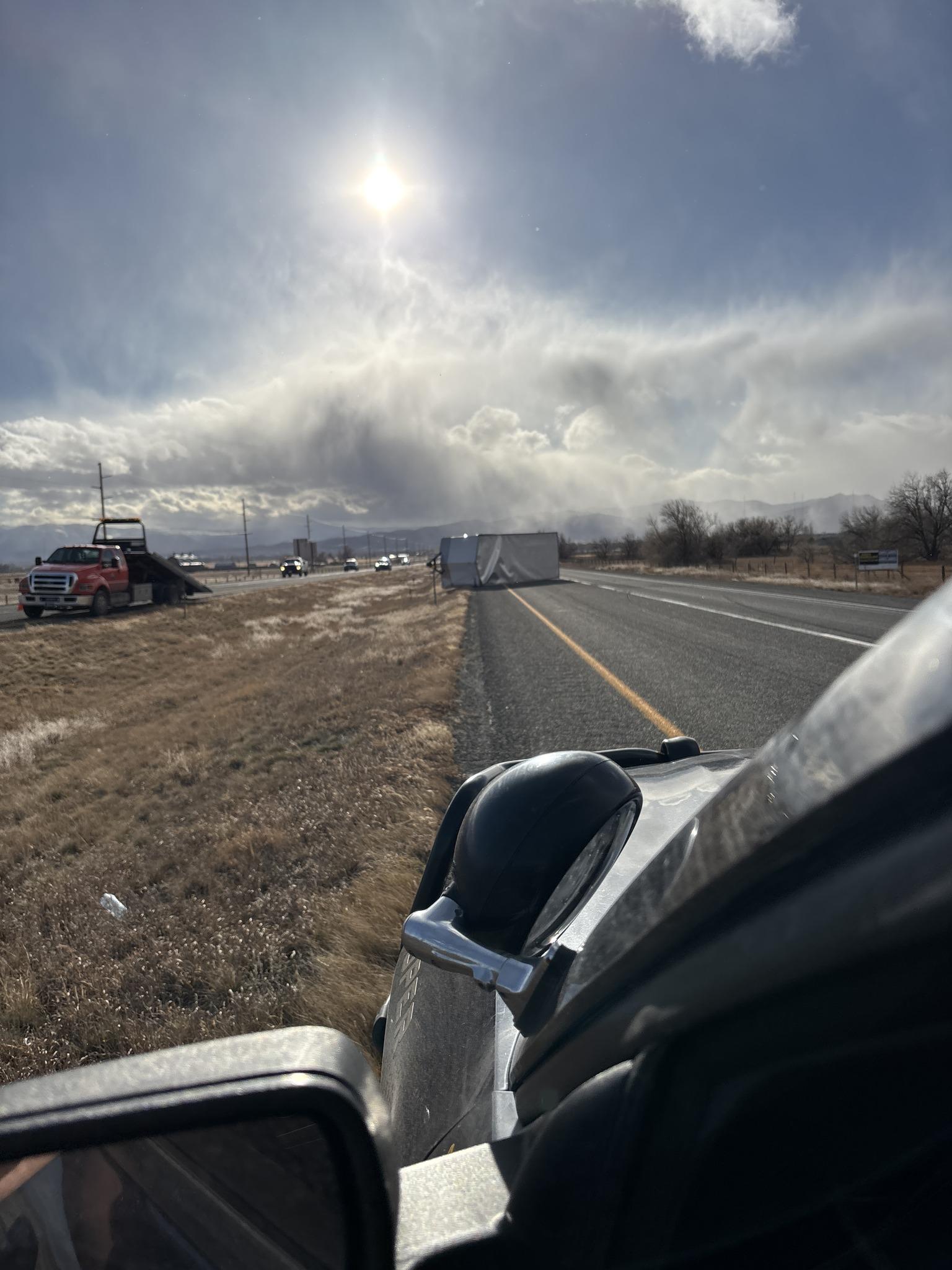 One empty tractor-trailer traveling eastbound into Great Falls was blown onto its side by strong wind gusts. With no load inside, responders said there was nothing to keep the truck grounded. “There’s no weight, no load on those trucks, they’re just like parasails, they just tip over,” said Joe Benski with Benski Towing and Recovery, who responded to the scene.