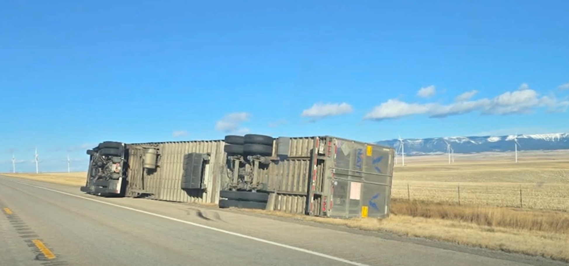 The Great Falls rollover was not an isolated incident. Other trucks and trailers across central Montana also toppled as winds intensified throughout the day, with gusts exceeding 100 miles per hour in some areas along the Rocky Mountain Front.