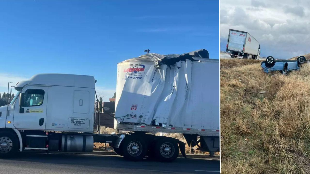 Several tractor-trailers, particularly those with empty or lightly loaded trailers, were reported to have toppled during the wind event. At least one semi and trailer sustained significant damage linked directly to the high winds, with photos and local reports showing overturned rigs and blocked travel lanes.