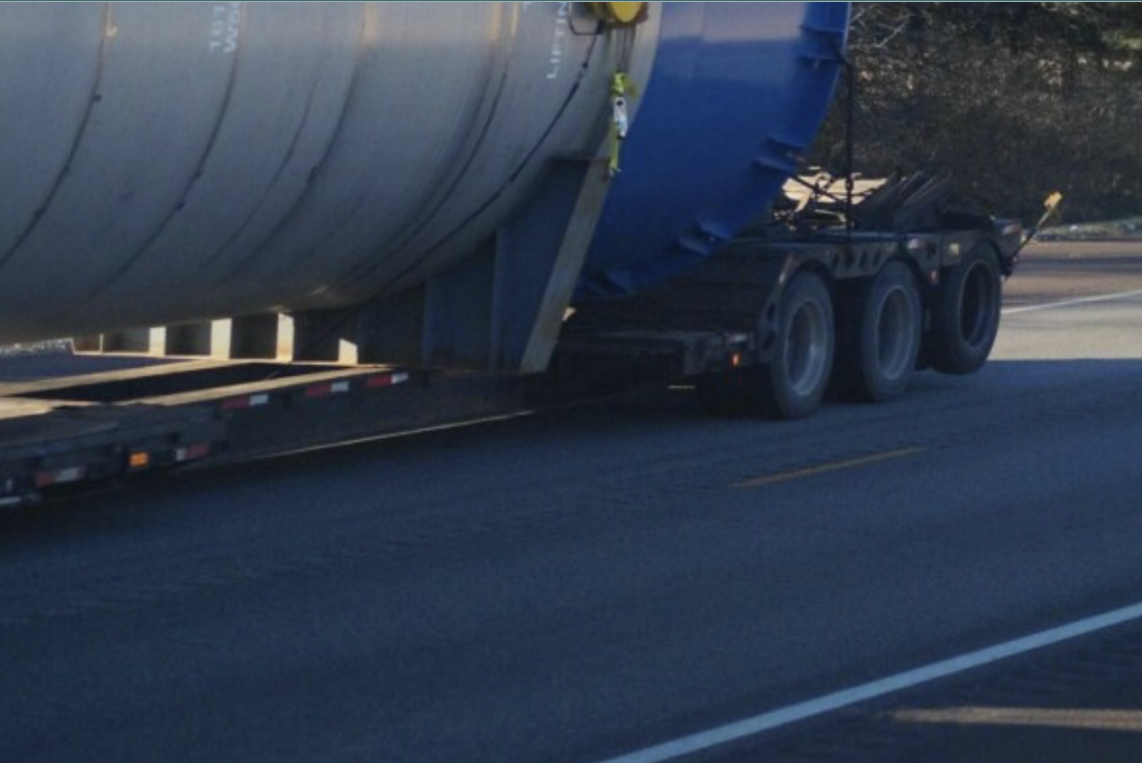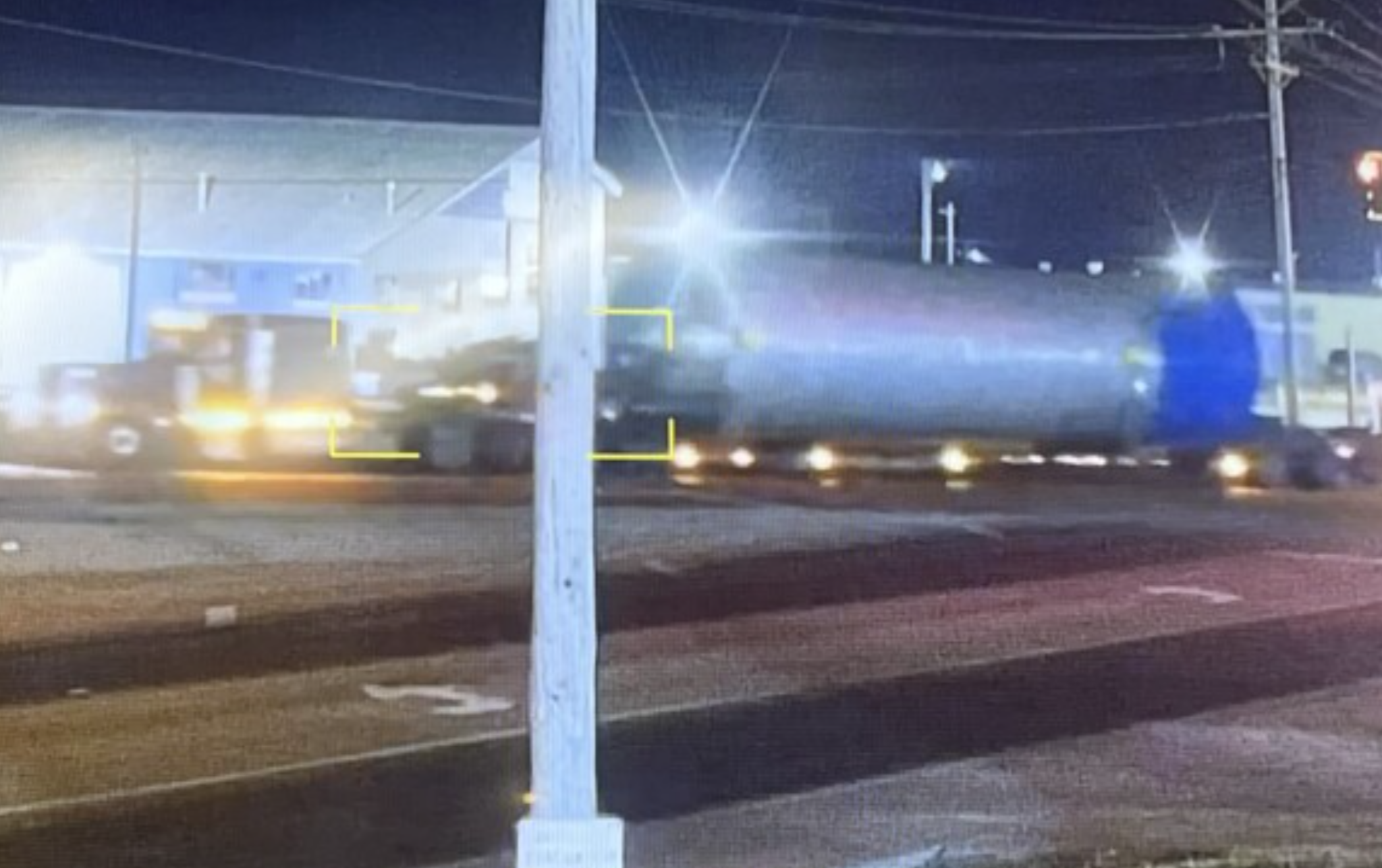 KHP said the commercial vehicle left the scene following the collision. Investigators described the truck as light-colored, possibly silver or gray, and said it was transporting an oversized load that included a large steel cylinder.