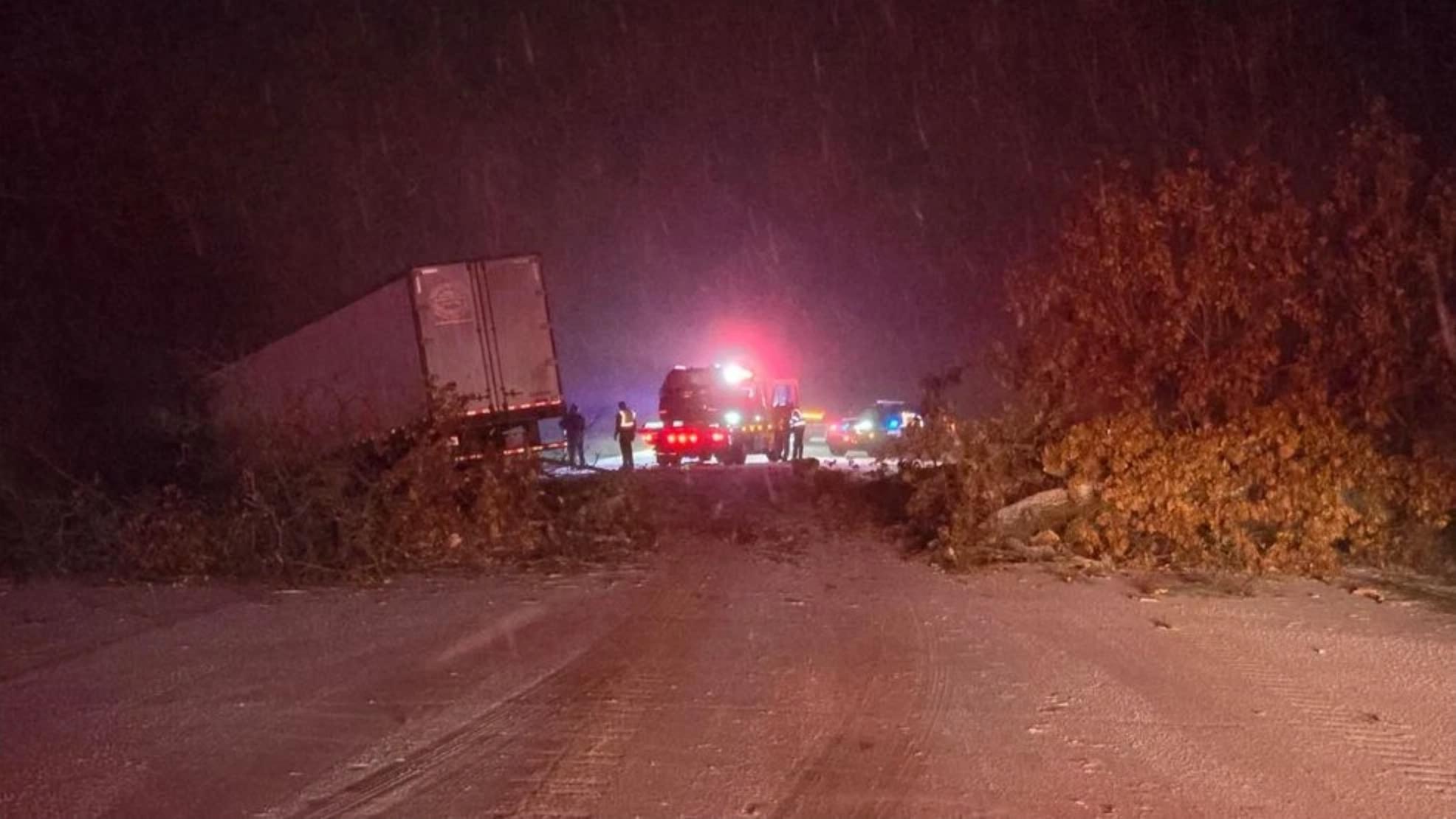 Semi-Truck Slides Off Road After Fallen Tree Blocks M-37 in Thornapple Township