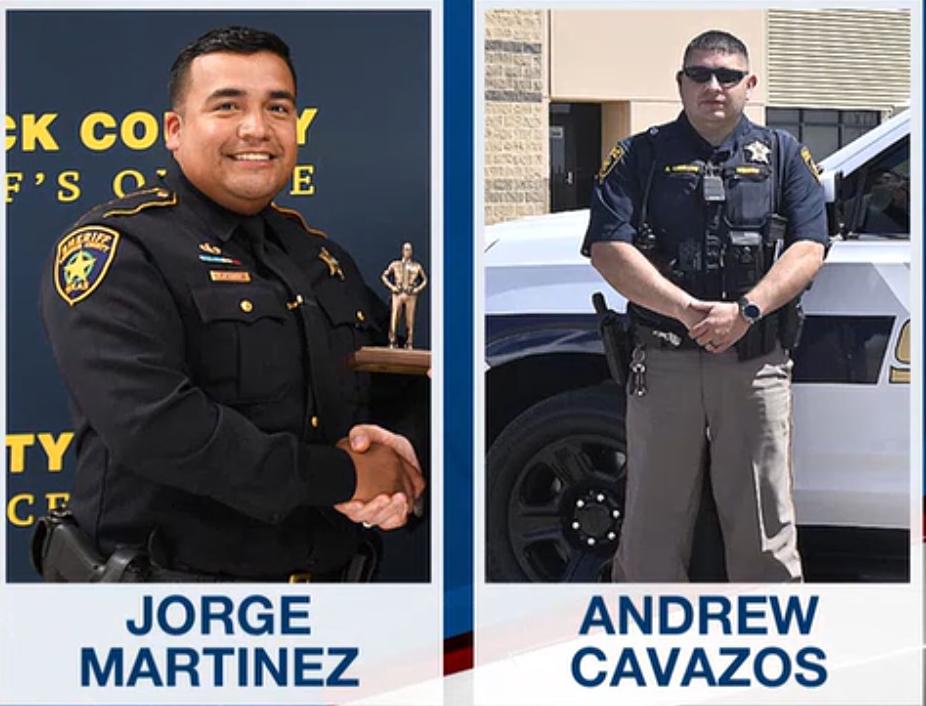 Officials said the semi-trailer rear-ended one of the patrol vehicles, pushing it toward the deputies and pinning them against a concrete barrier. Investigators said Deputy Cavasos was pushed partially over the overpass but was pinned to the wall, preventing him from falling. Authorities said that as he dangled over 98th Street, patrons at a nearby gas station rushed to the scene and held onto Cavasos to keep him from falling while Martinez was unable to reach him, according to a Lubbock police news release. A group of good Samaritans also rushed from nearby work sites to help rescue him, according to later reporting.
