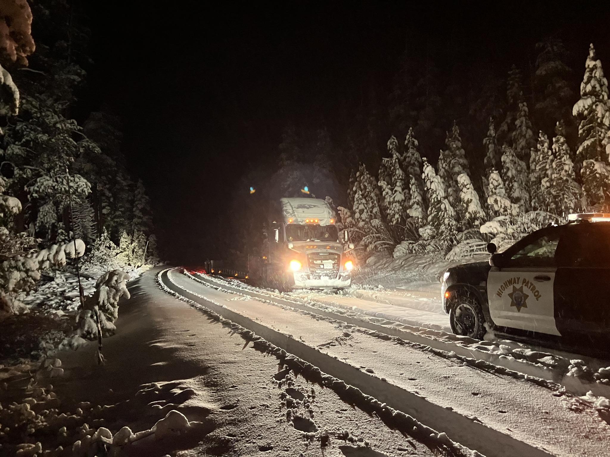 SIERRA COUNTY, CALIFORNIA — A semi-truck driver spent Christmas Eve stuck during a snowstorm in a very rural part of Sierra County after California Highway Patrol officials said the driver ignored “Road Closed” signs and followed GPS onto a closed roadway, prompting a response from a trooper to assist.