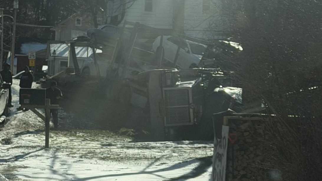 North Hopewell Township Police said Main Street at Beaver Street was closed to all traffic until further notice while the scene was handled. Police said the truck was hauling more than half a dozen vehicles.