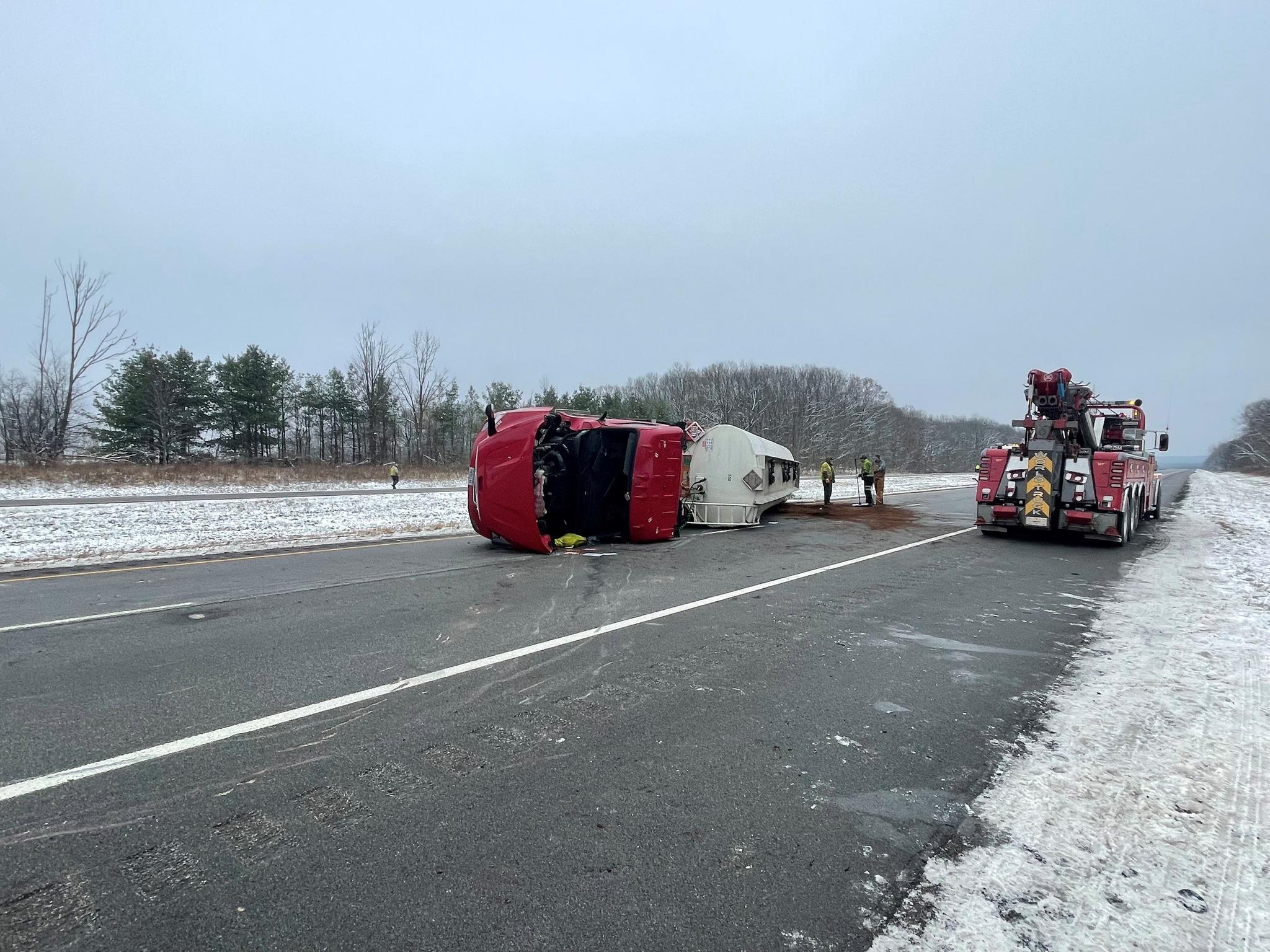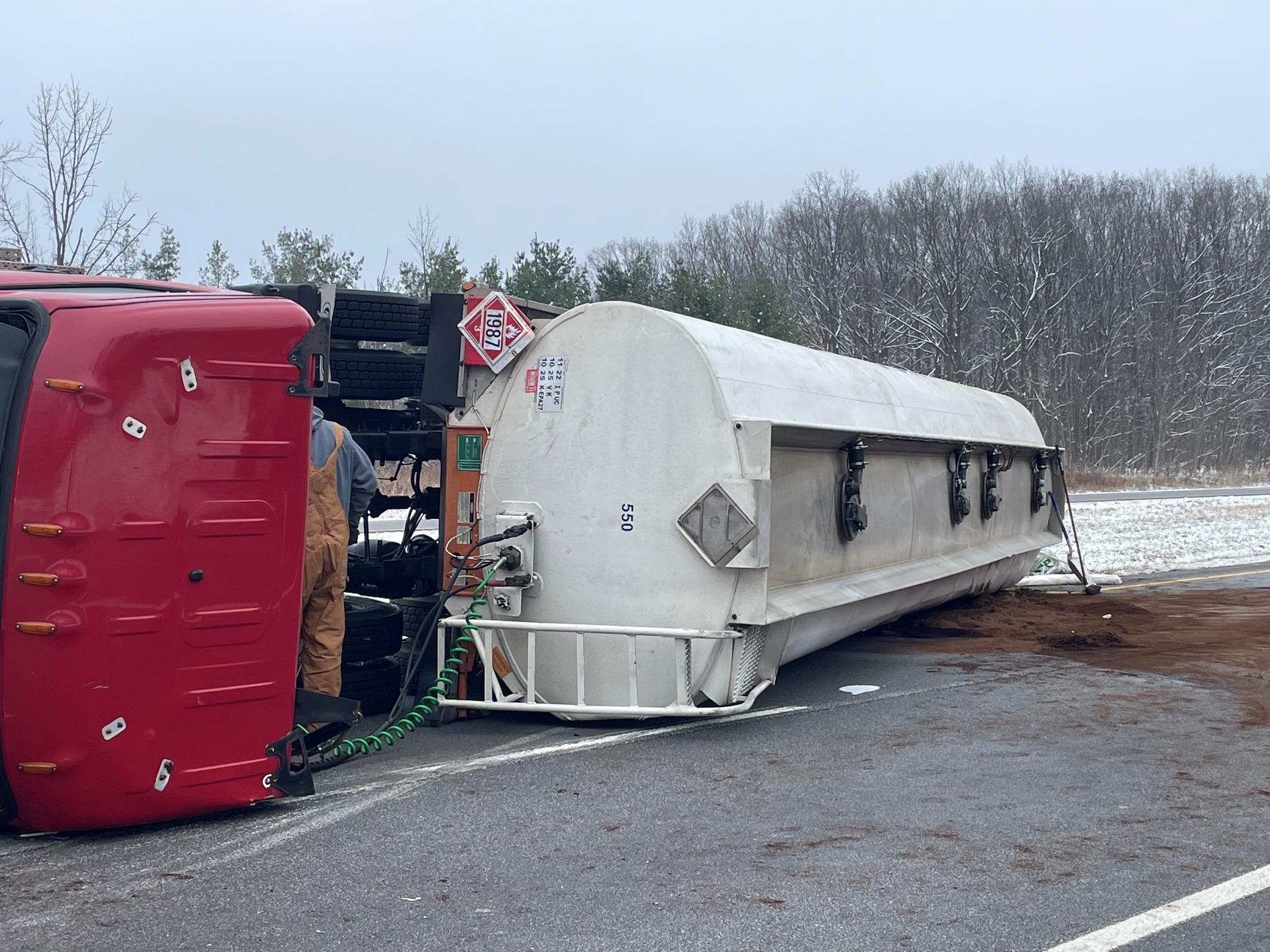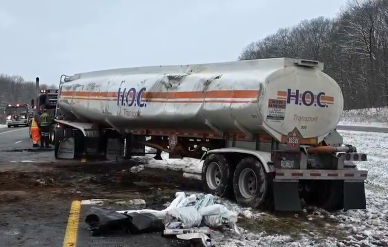 The crash happened at approximately 4:00 a.m. on Wednesday, Dec. 3, as the tanker was traveling north on I-271 near milepost 4 in Granger Township. Troopers said the tanker driver fell asleep at the wheel, causing the truck to go off the roadway, jackknife, and overturn. The tanker was carrying 8,000 gallons of ethanol, and about 4,000 gallons spilled, primarily into the median, officials said.