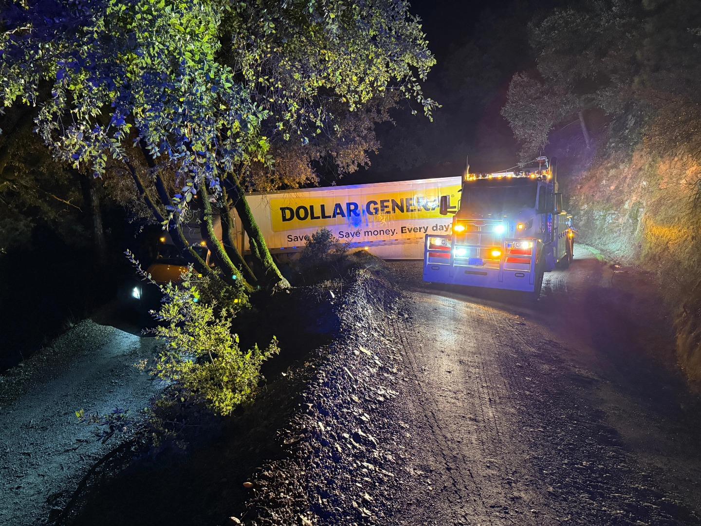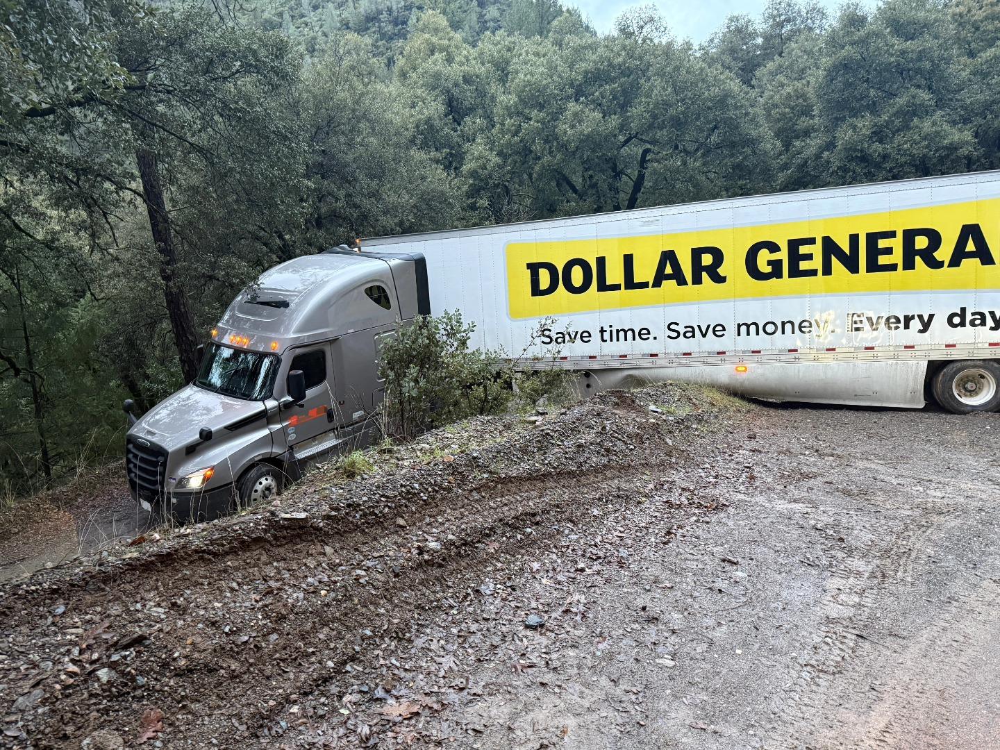 Big Rig Gets Stuck After Following GPS Onto “Almost Impassable” Yankee Jim’s Road in Placer County