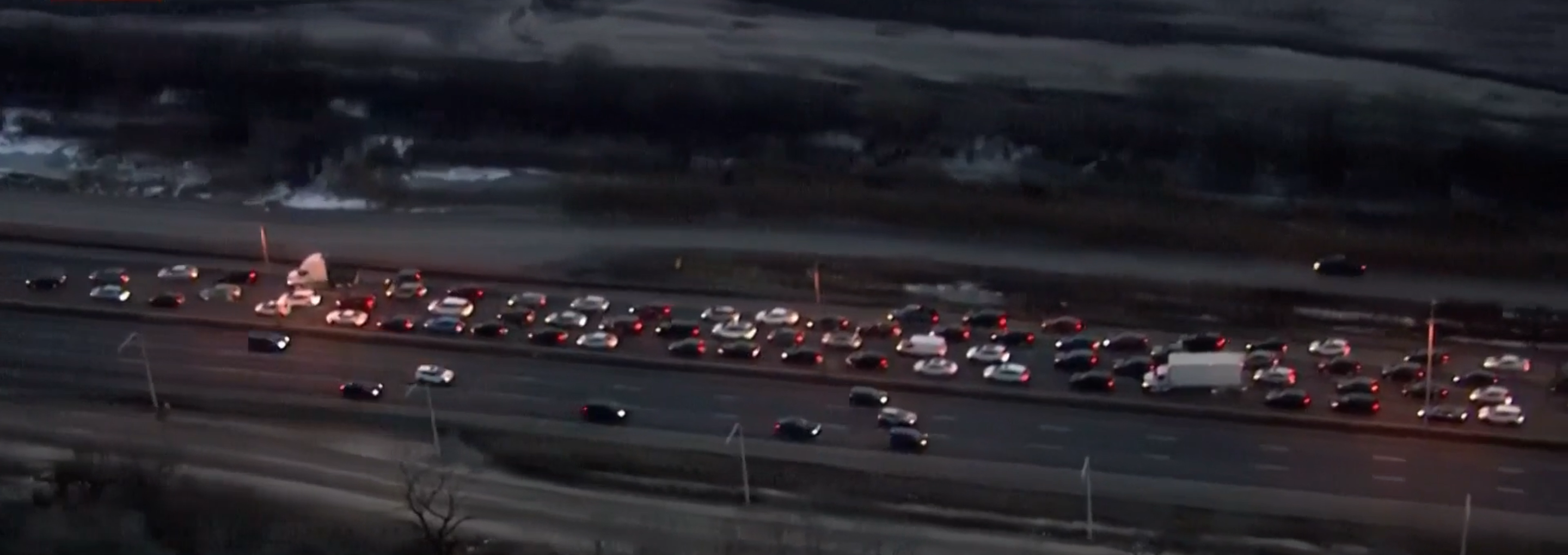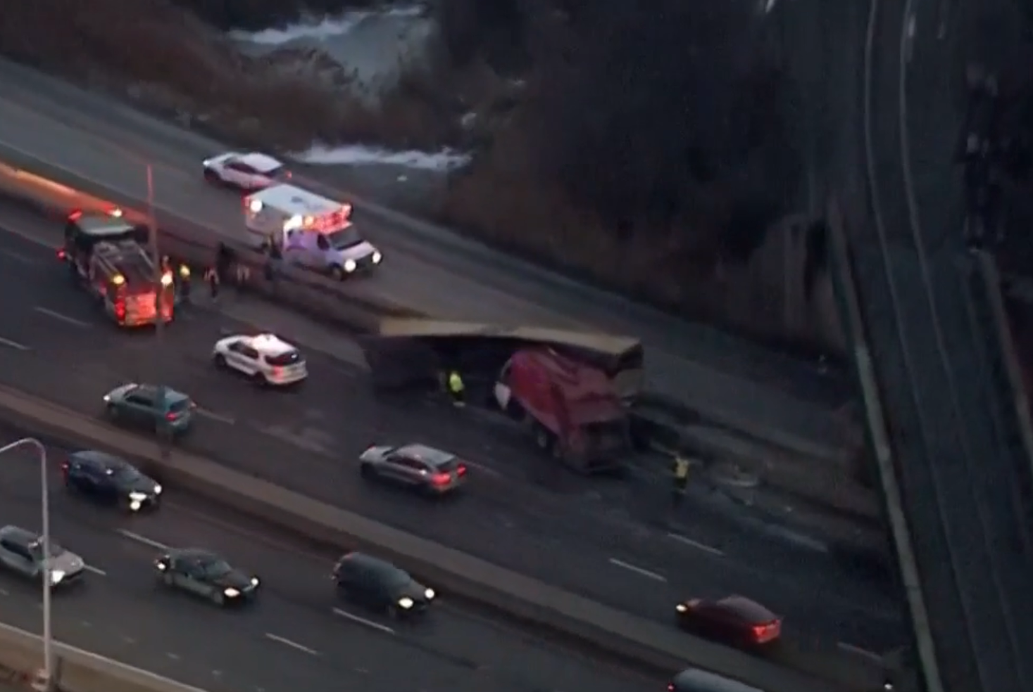 Illinois State Police said troopers responded around 4:30 p.m. to southbound Interstate 94 at 127th Street, where a tractor-trailer hit the Norfolk Southern Bridge overpass. Police said the impact caused the empty trailer to dislodge from the tractor.