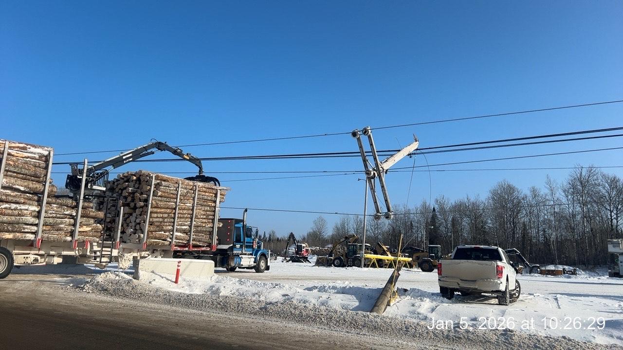 Maine State Police said troopers responded around 9:02 a.m. on January 5, 2026, to reports of a tractor-trailer stuck in the power lines. Investigators determined the driver had just received the load of wood from the mill in Masardis and then tried to cross the intersection at the mill. Because the load was overfilled, the boom on the vehicle and the load on the trailer caught the overhead lines, leaving the truck hung up and immobile.