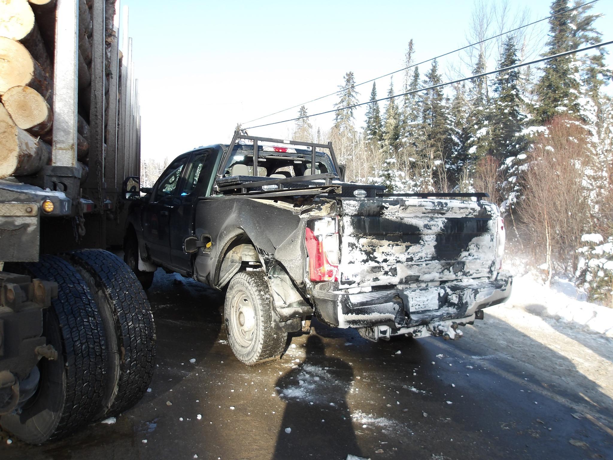 Loaded Log Truck Jackknifes on Ice, Hits Maine Forest Service Vehicle and Sends Occupant to Hospital