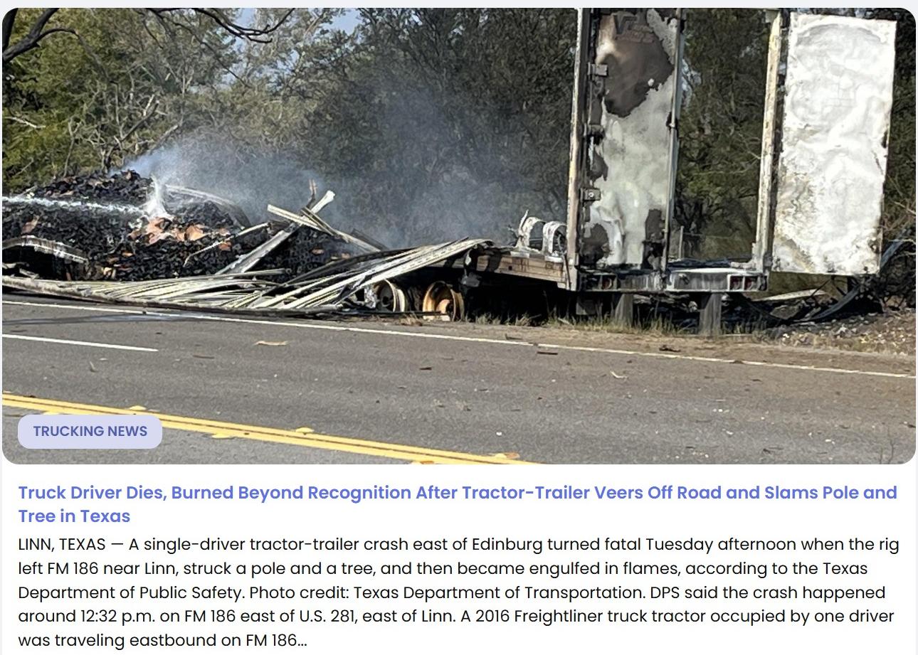 UPDATE: Texas DPS Identifies 74-Year-Old Driver Killed in Fiery Tractor-Trailer Crash on FM 186 in Hidalgo County