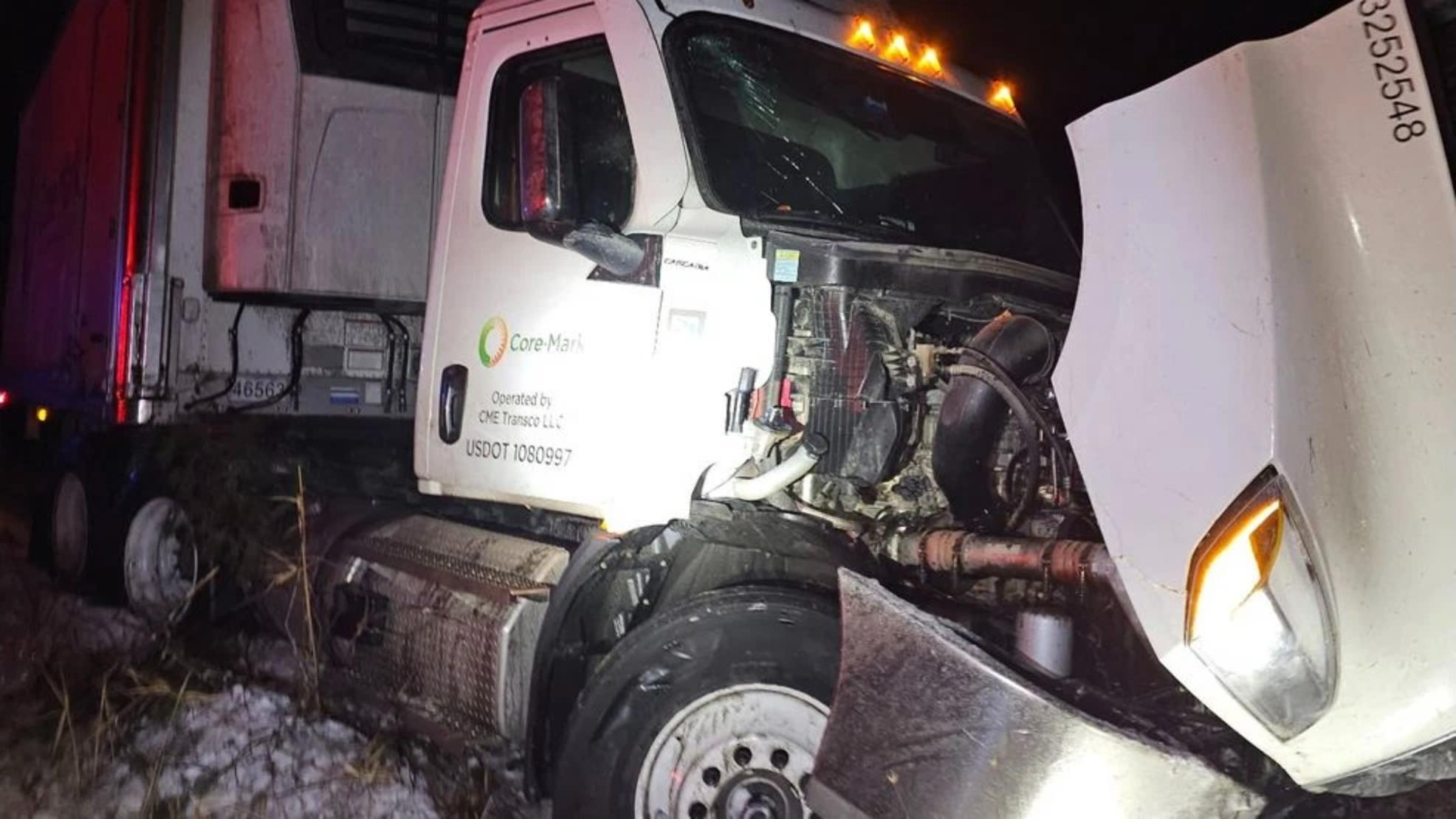 State police said the Bangor Regional Communications Center received the initial report from a passerby at approximately 3:49 a.m. on Thursday, January 8, 2026, indicating the tractor-trailer left the roadway and struck the center median in the town of Clinton. The crash was reported around 3:50 a.m..