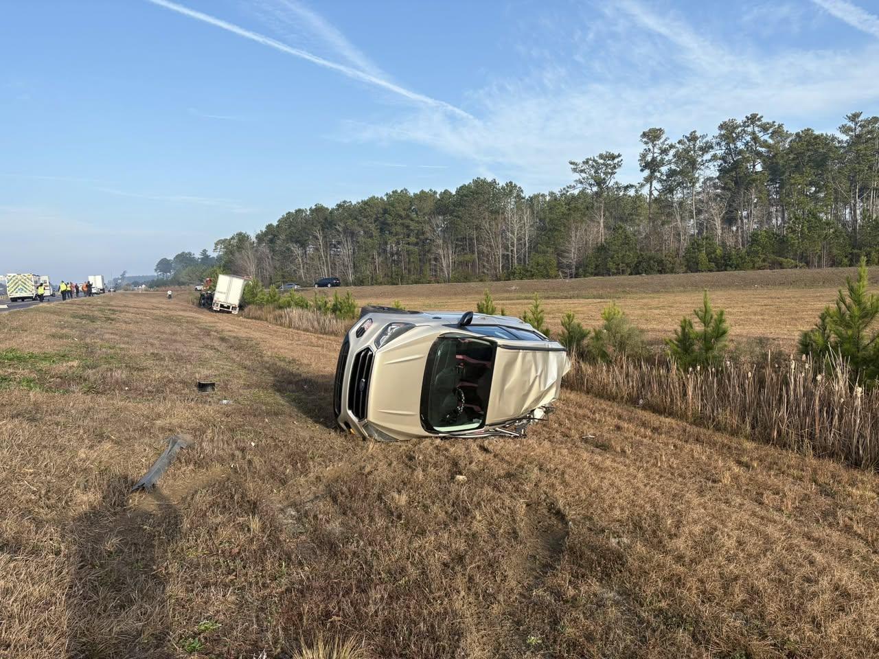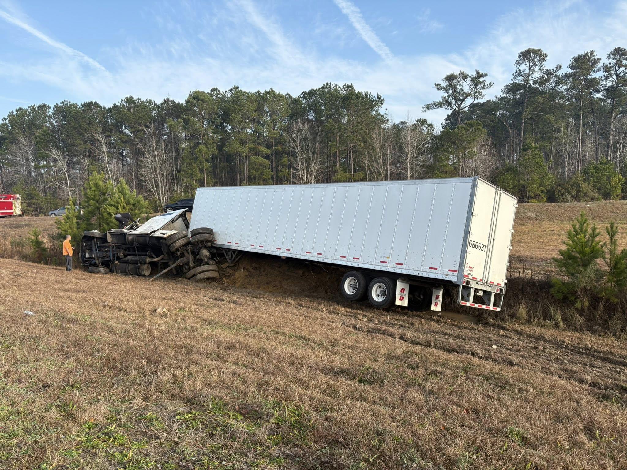 Semi-Truck Partially Overturns in Embankment and SUV Rolls Over After Crash on I-26 Near Nexton