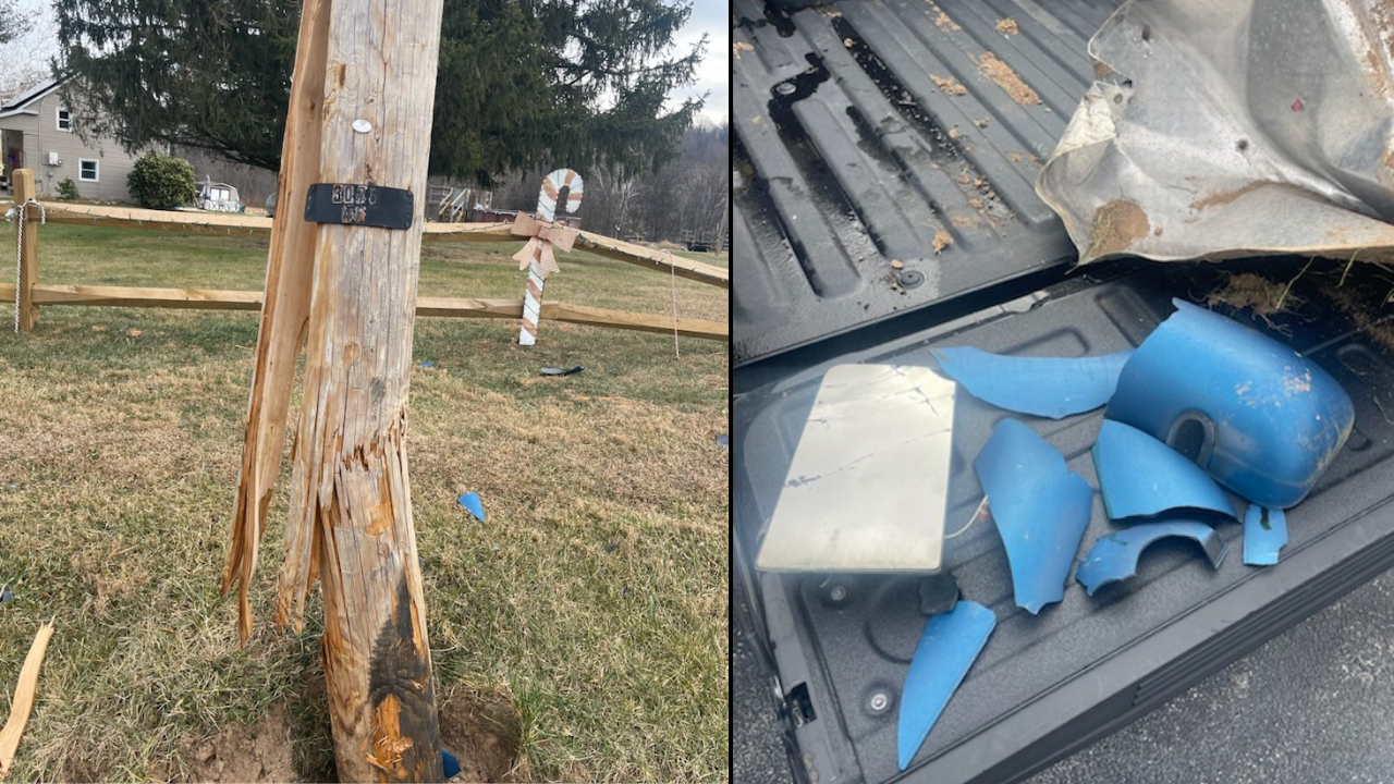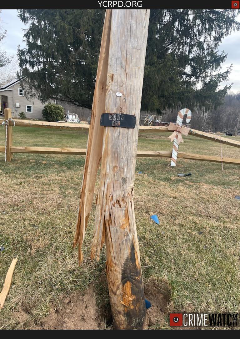 Police said the crash happened on December 30, 2025, sometime between 5:00 p.m. and 6:00 p.m., near 1070 Pleasant Grove Road in Windsor Township. Investigators reported the vehicle struck the embankment before hitting the utility pole, which was left broken at its base.