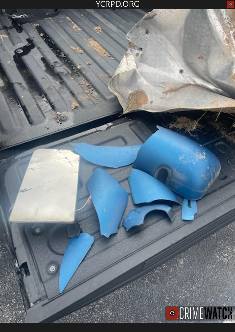 After responding to the area and examining debris left behind, officers said the striking vehicle left several parts at the scene. Based on the pieces recovered, police believe the vehicle involved may have been a blue semi-truck.